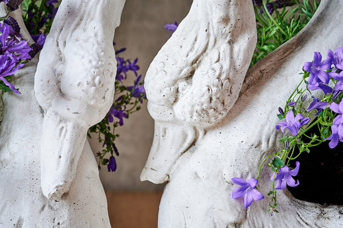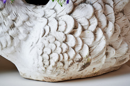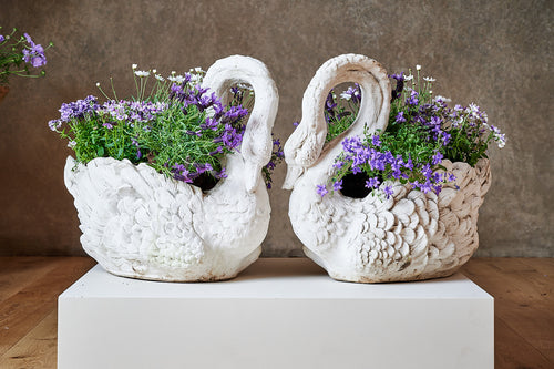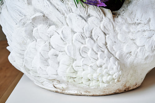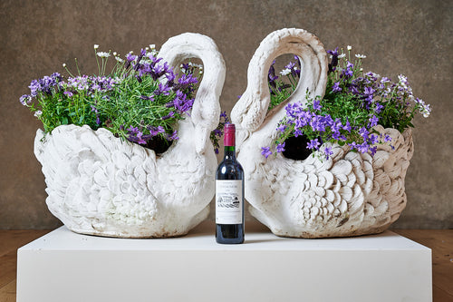 A fine and elegant pair of swan planters with beautifully curved necks would make an ideal statement piece in any garden. This pair has the finest detail we have ever seen on this type of planter. The casting of the feathers on the body is of particularly good quality and stands out even from a distance.