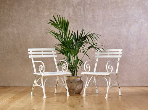 They were made by the Grassin Baledans foundry in the French town of Arras and unusually have wooden seats and backs as compared to the fully wrought iron versions.