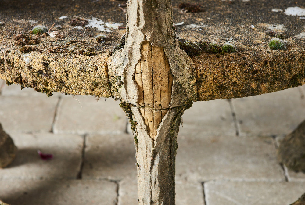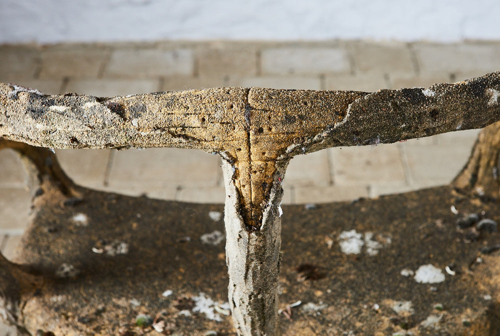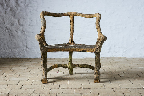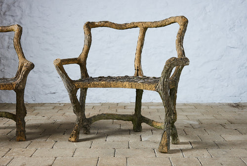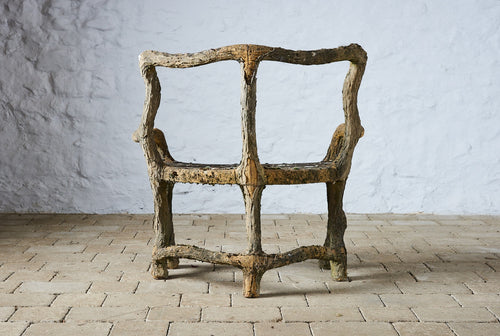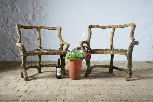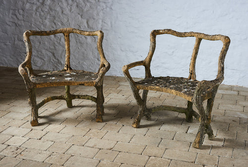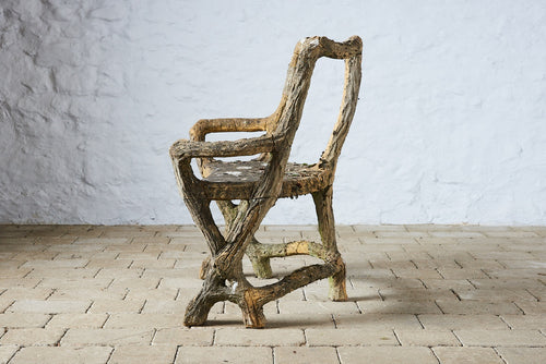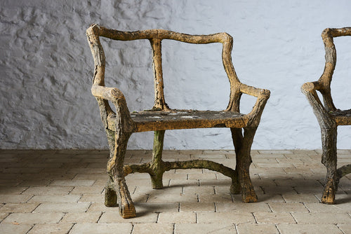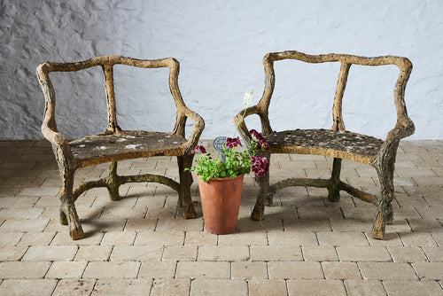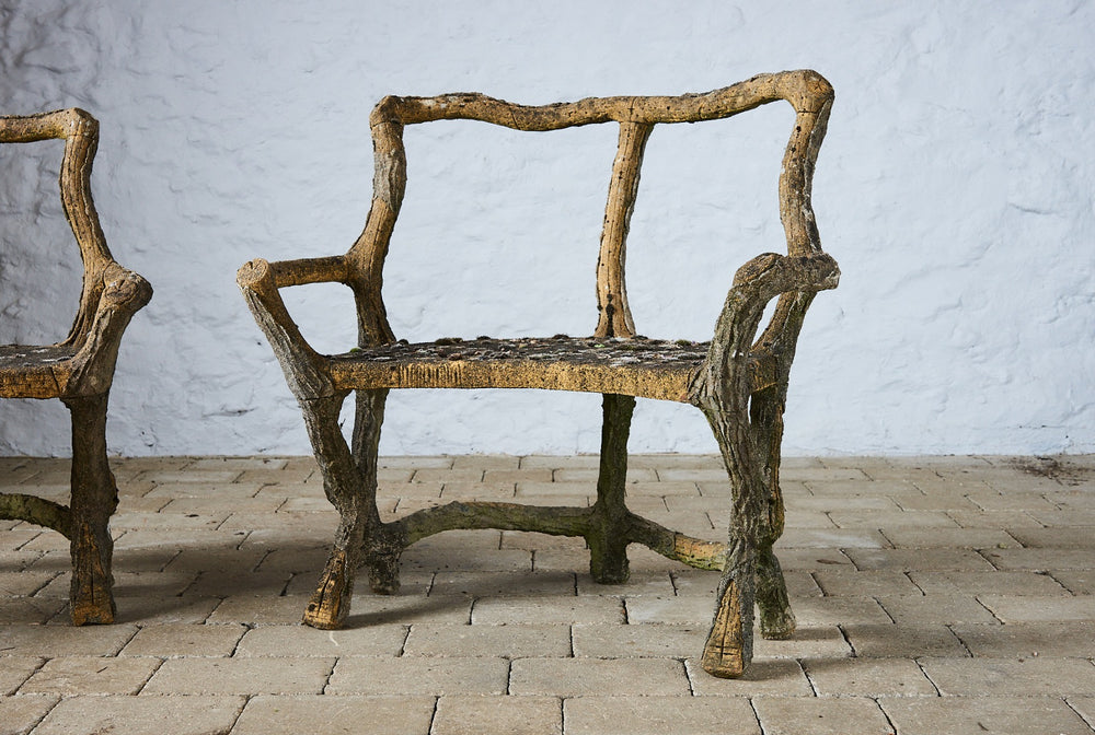 Faux bois means "false or fake wood" and comes from a technique used in France since the Renaissance to imitate natural-looking wood. Talented craftsmen called "Rocailleurs" used materials including cement to create the wood like effect even simulating the loss of bark and woodworm!