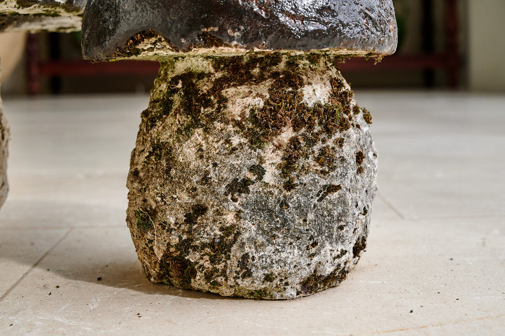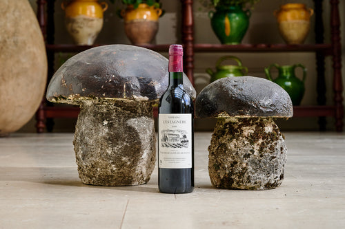 A pair of handcrafted and randomly designed concrete mushrooms make a lovely display in the garden or in the home. We bought them in the South of France so they really are champignons! They were commissioned in the 1960s to celebrate the cepes of porcini mushrooms found to the north of Carcassone in the Montagne Noir Forests.