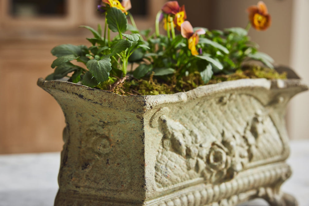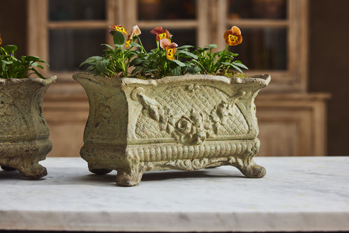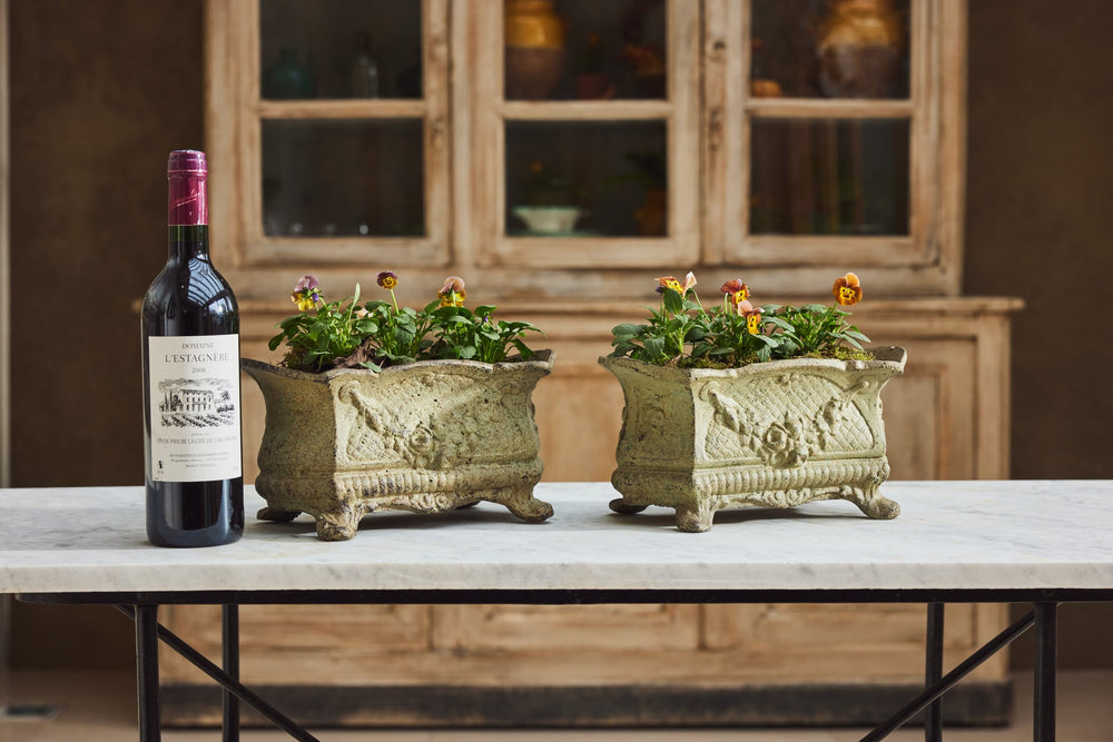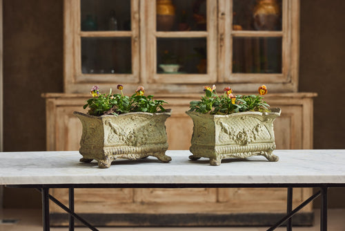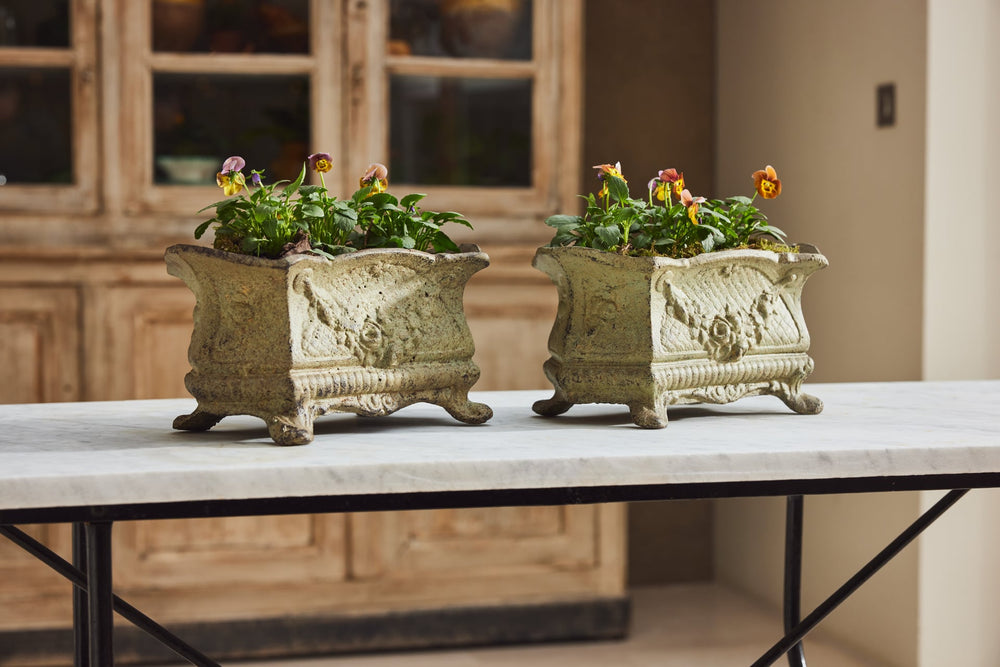 Their small scale makes them adaptable: ideal for seasonal planting on a garden shelf, tabletop, or windowsill. Compact, well-cast and decorative without being overstated. A refined pair that works equally well indoors or out.