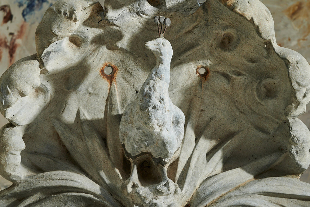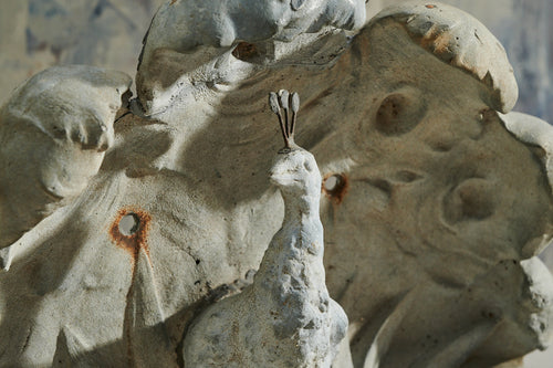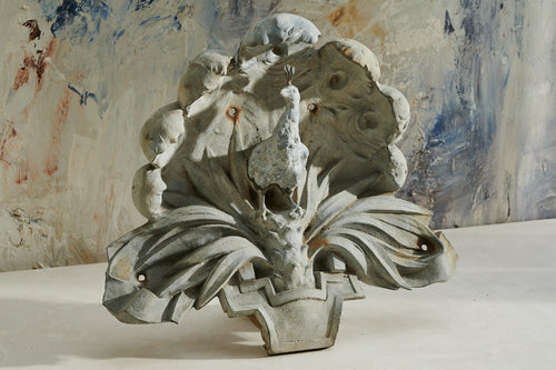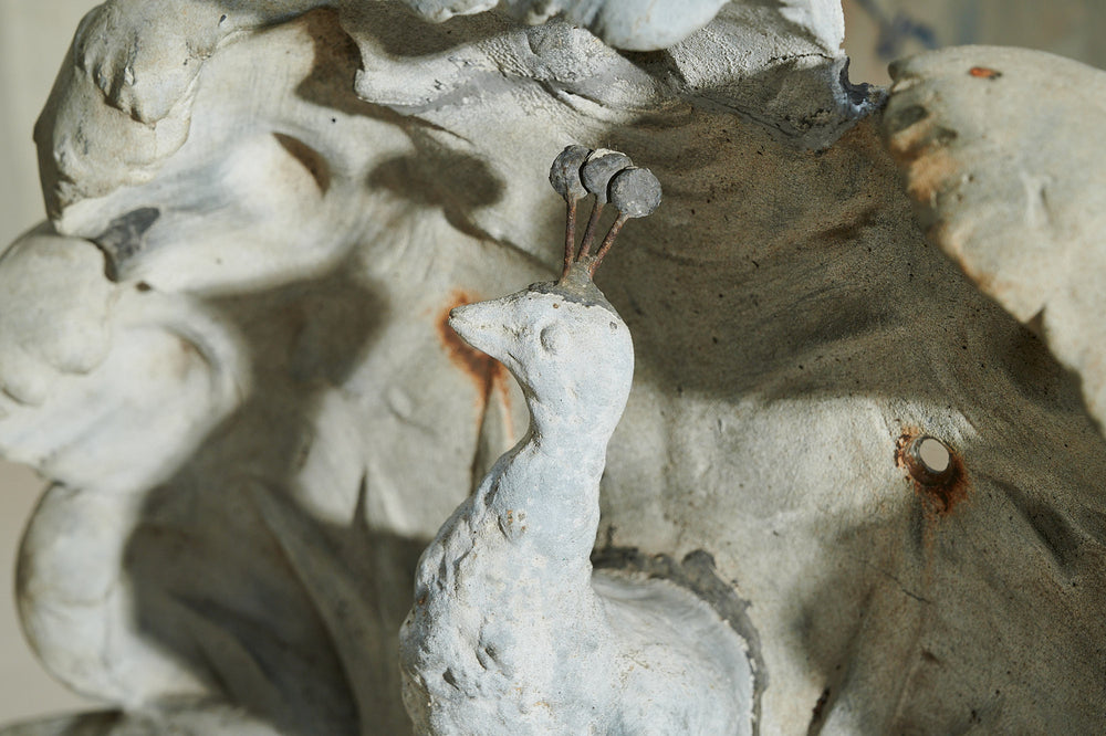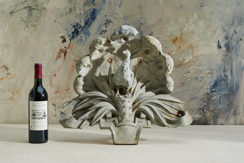 This really lovely zinc wall hanging plaque depicting an open tail peacock sitting on top of what appears to be a pineapple would add a touch of class to any garden.