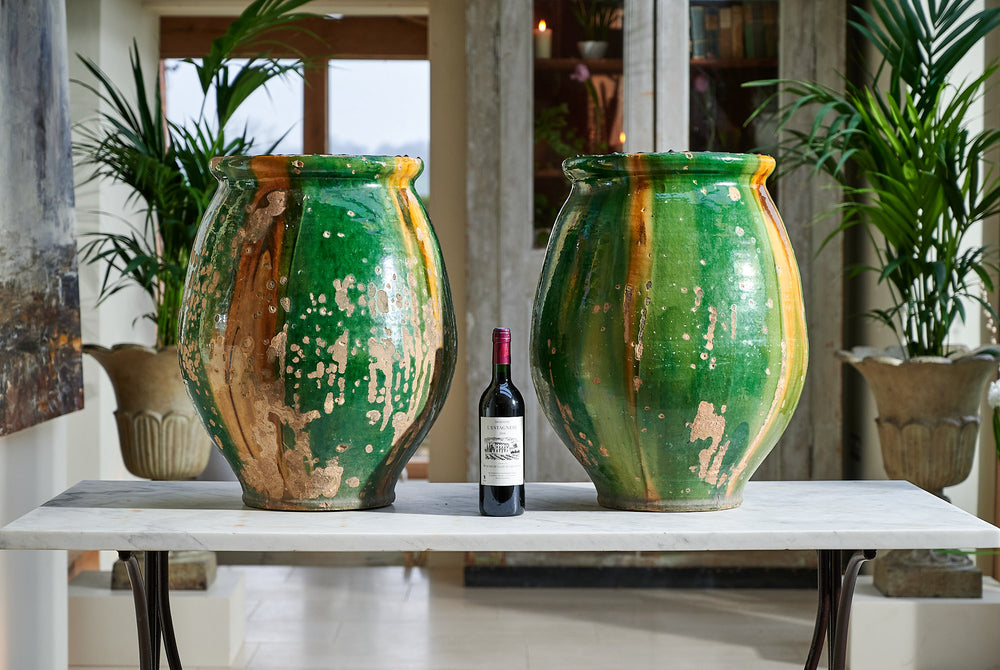 They were bought from a house in the hilltop village of Menerbres in the Luberon Valley where they had been used as garden planters and therefore have the all-important drainage holes.