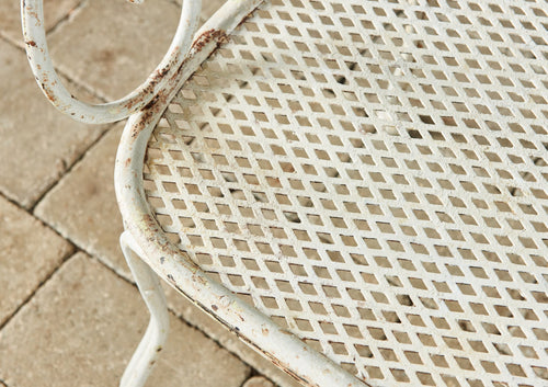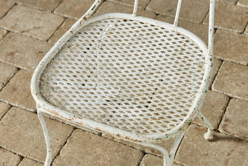 This set of six wrought iron chairs is in very good condition and in their original paint. What makes these chairs unusual is the attractive design to the backs which we have never seen before. They are particularly sturdy and all have fully intact mesh seats. They would look stunning around an appropriate garden table.