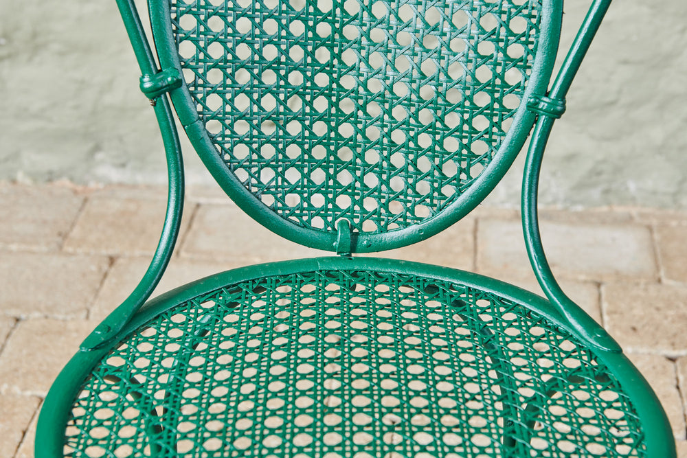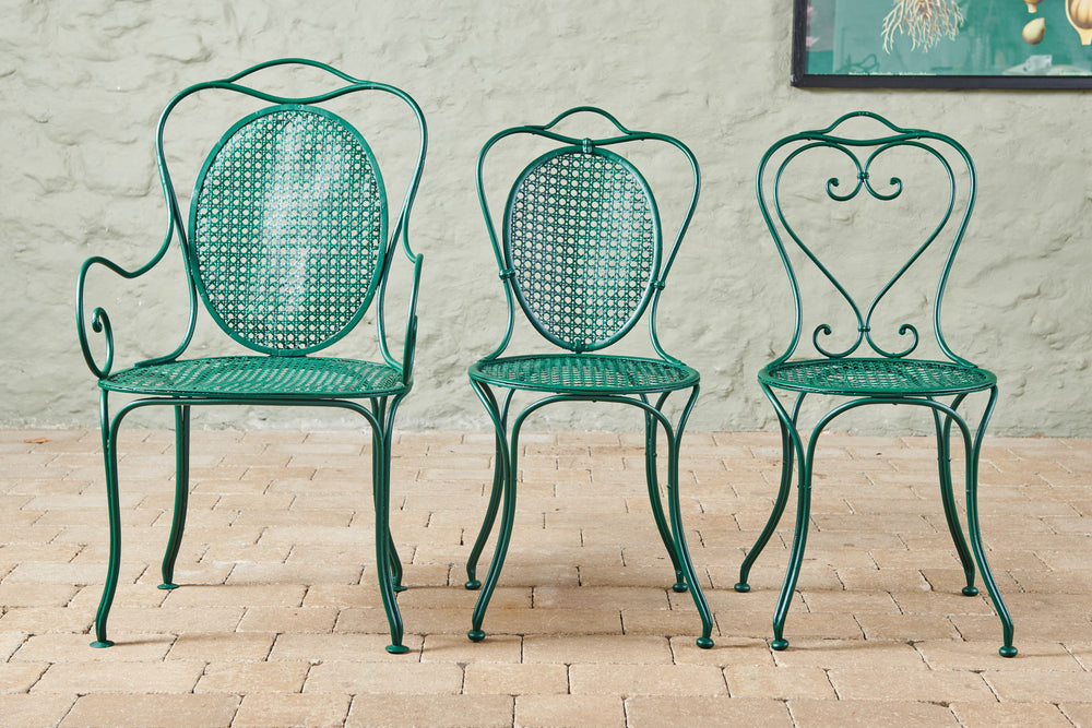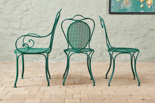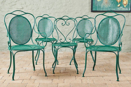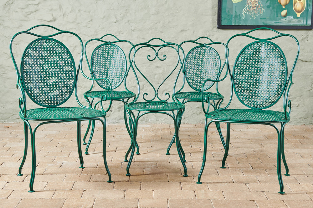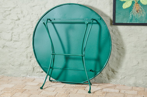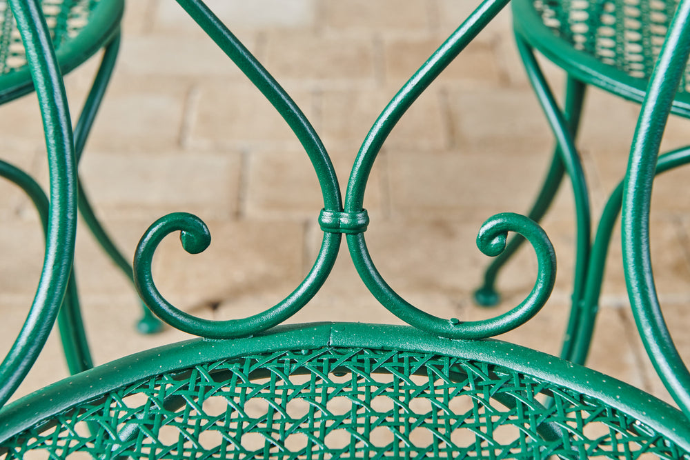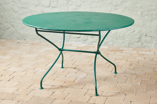 This garden set which includes a substantial table and five chairs had seen better days when it arrived in the UK from France. We set about a thorough repair job finishing it in textured green powder coating to provide long time protection from the elements whilst at the same time as restoring it to its former glory. The folding table enables it to be easily stored in the winter along with the chairs that will stack. A good value set.