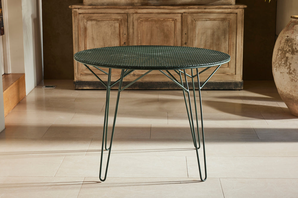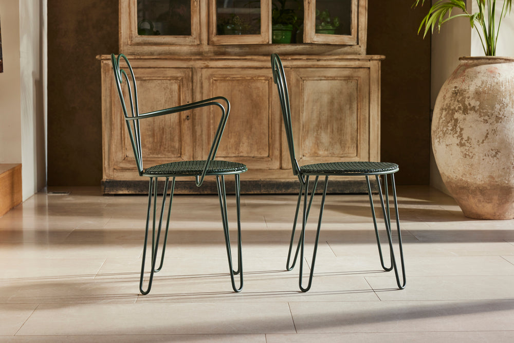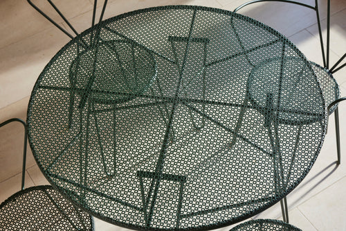 This rare set is not only notable for its distinctive design but also for its versatility, seamlessly fitting into both indoor and outdoor settings. The timeless appeal and sculptural quality reflect the mid-century modern aesthetic that Matégot helped to define.