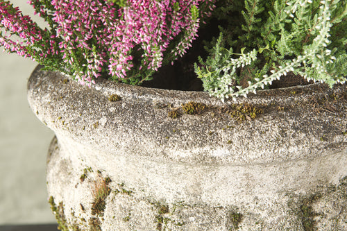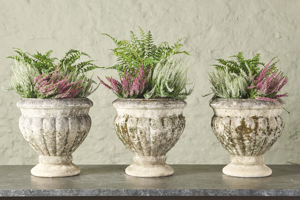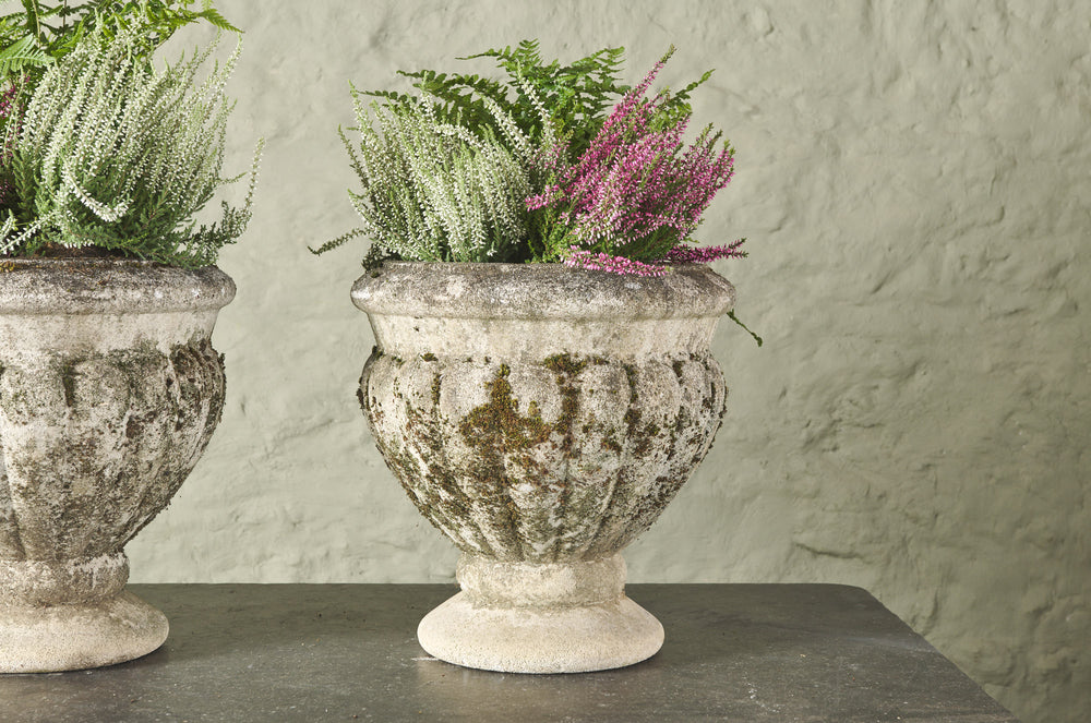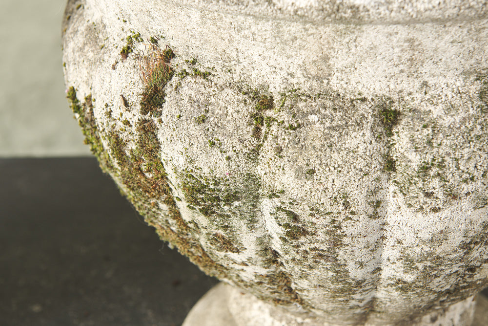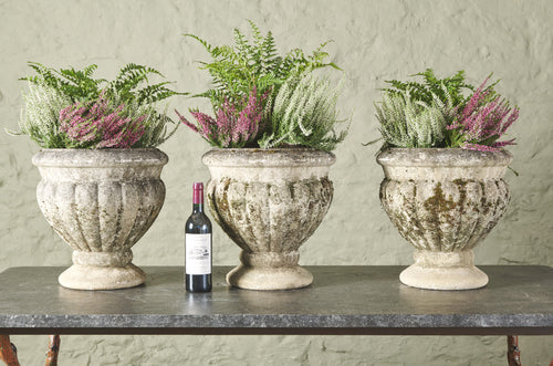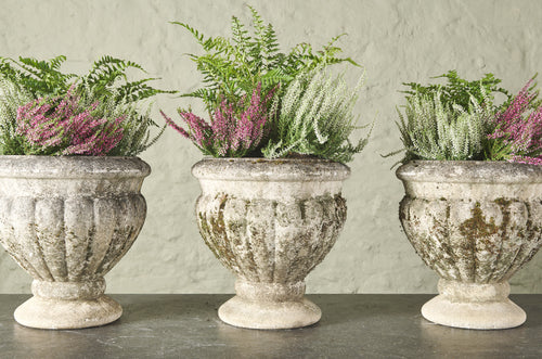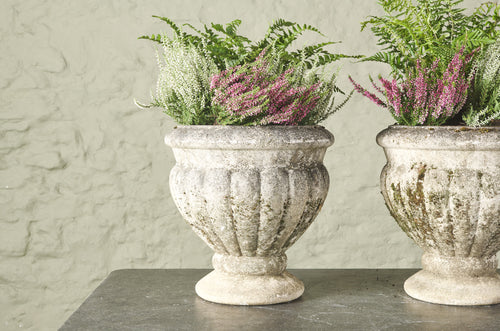 Although these planters are only 60-70 years old we loved the unusual shape and that they had developed an attractive mossy patina. Made from reconstituted stone they are in good condition and would fit seamlessly into a mature garden.