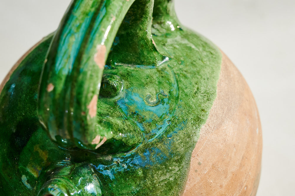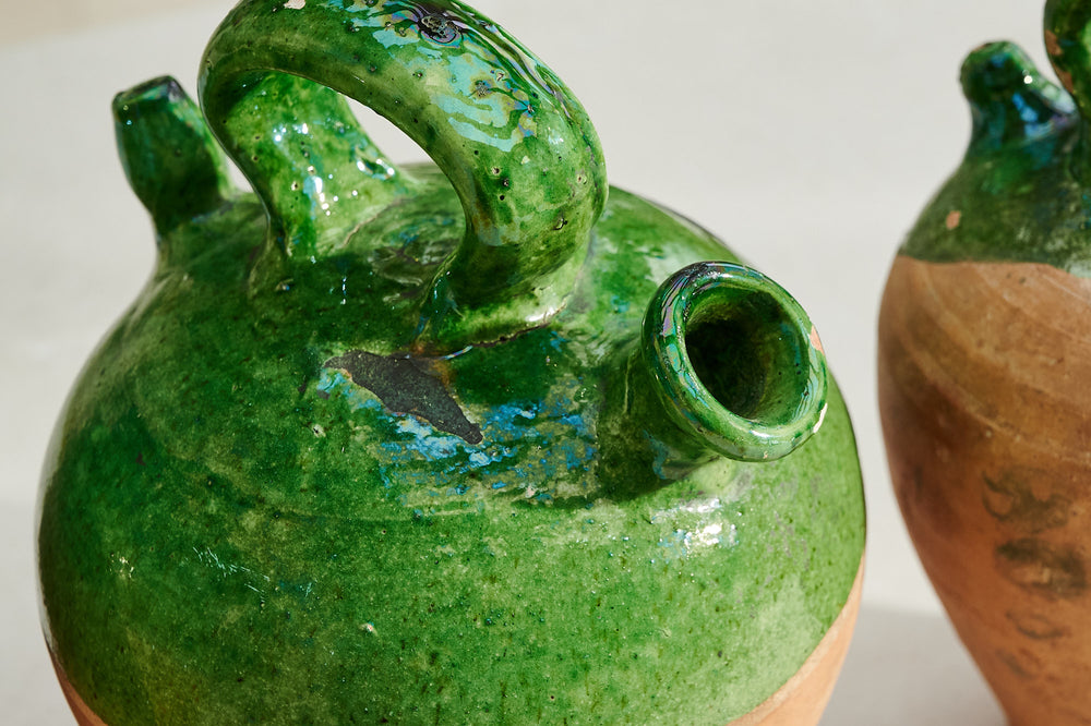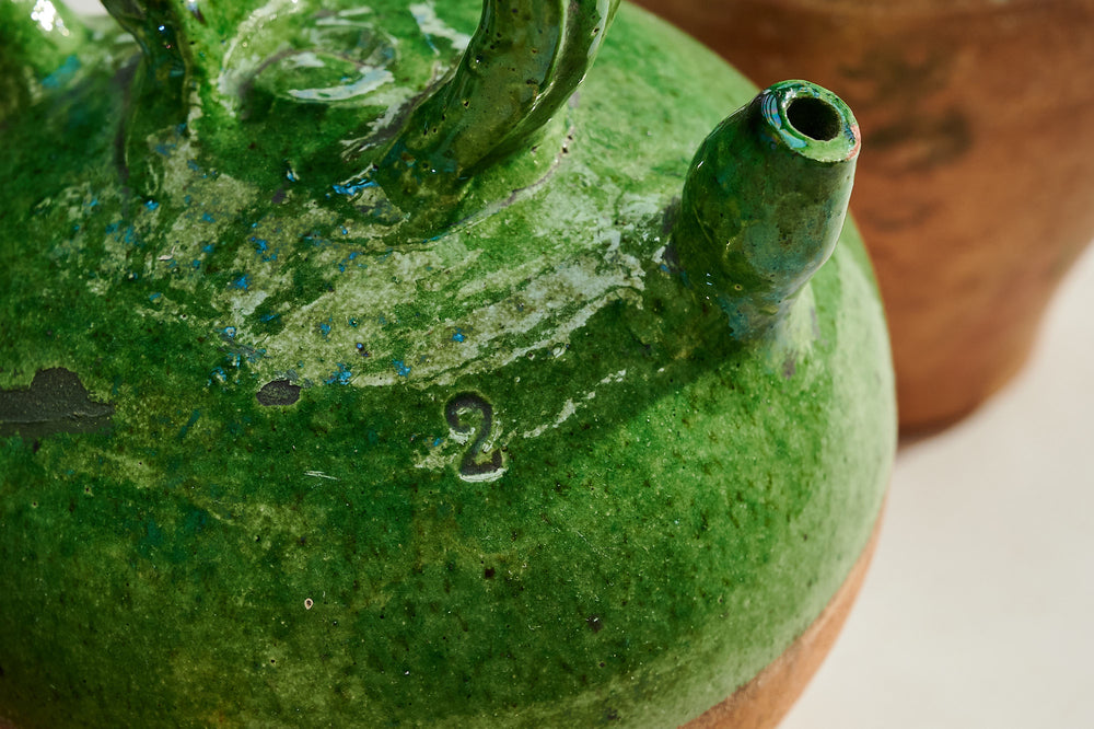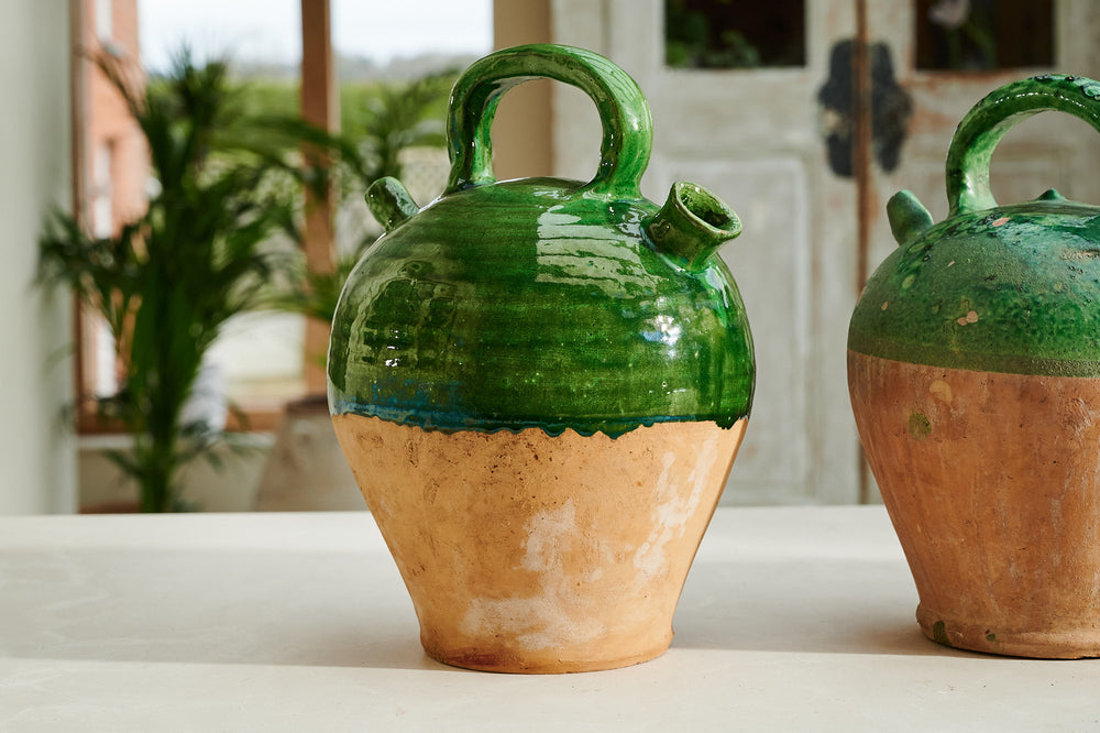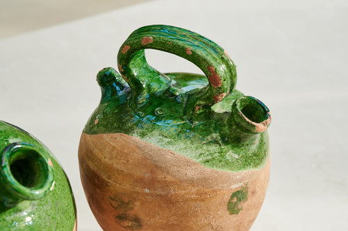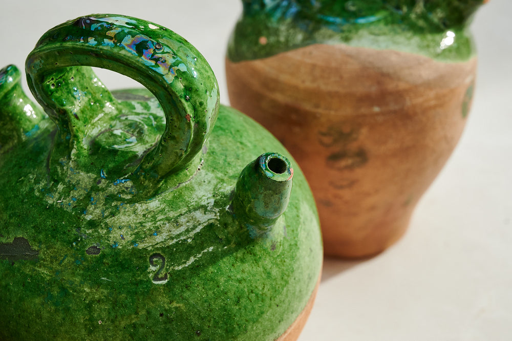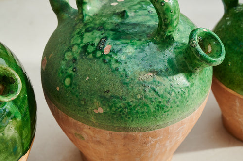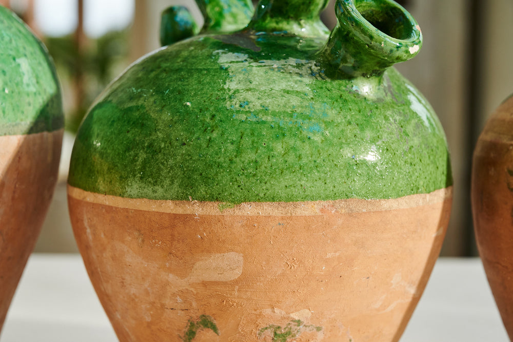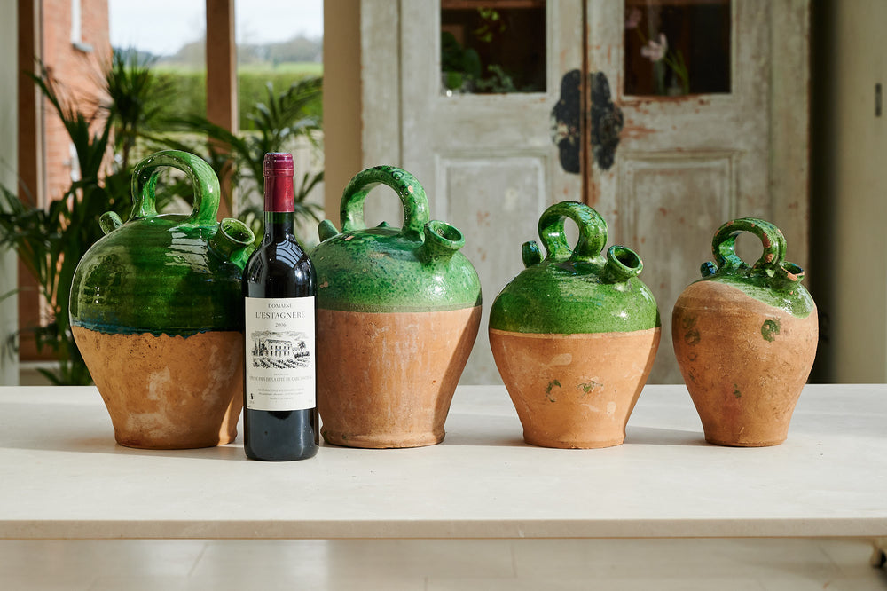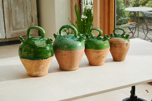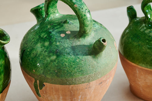 A set of 4 19th-century terracotta water jugs with a lovely bright green glaze. In good condition barring their descending size would make them an attractive addition to any home.