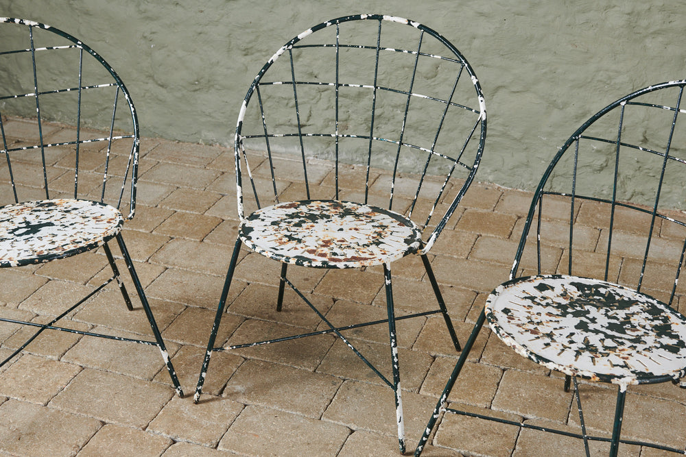 We couldn't resist these stylish garden from the swinging '60s. Their black and white chippy paint and a curved back make them a real character trio. They would make great kitchen chairs and looks equally as good in the garden.