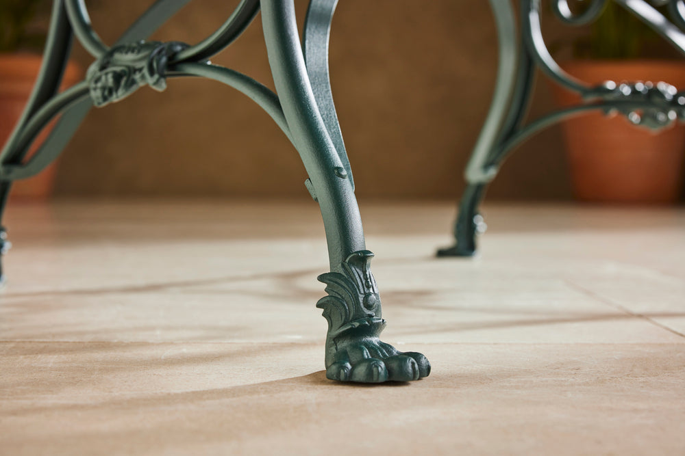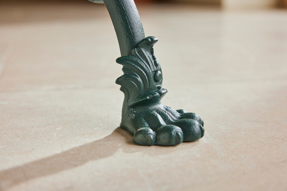 When we bought them, they were in good but very rusty condition, so we have had them grit-blasted and powder coated to restore them to their natural beauty. They feature lions claw feet and two makers' plaques on both sides of the frame.
