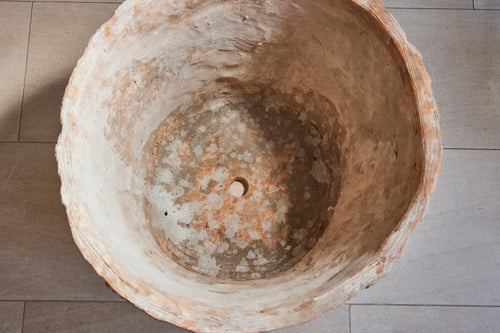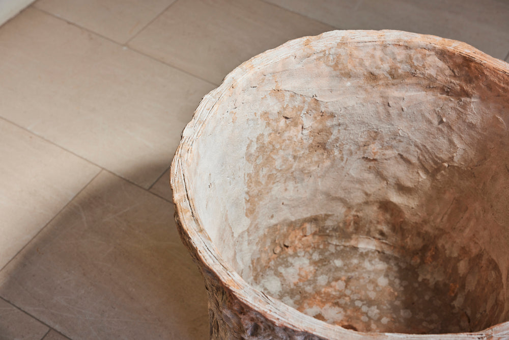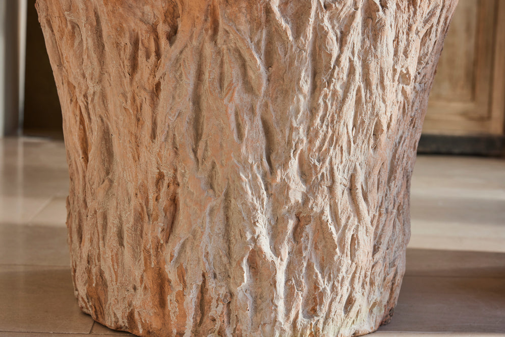 A striking pair of large terracotta planters, cast to represent the texture of tree bark. Made using 19th-century moulds found in a derelict factory in the South of France, they’re now handcrafted in limited numbers. They offer the look and quality of original 19th-century pieces at a fraction of the cost – and are perfect for small trees, shrubs, or floral displays.