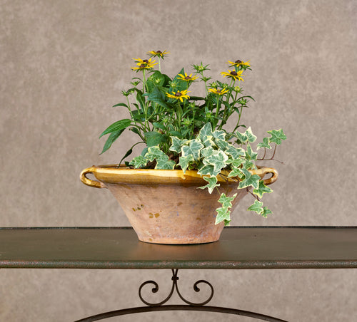 With its distinctive handles and rich two-tone colour, this will be a lovely antique patio planter. It’s a splendid bowl and deserves to have a place in a household again.