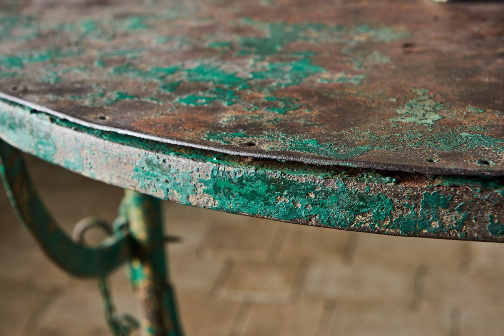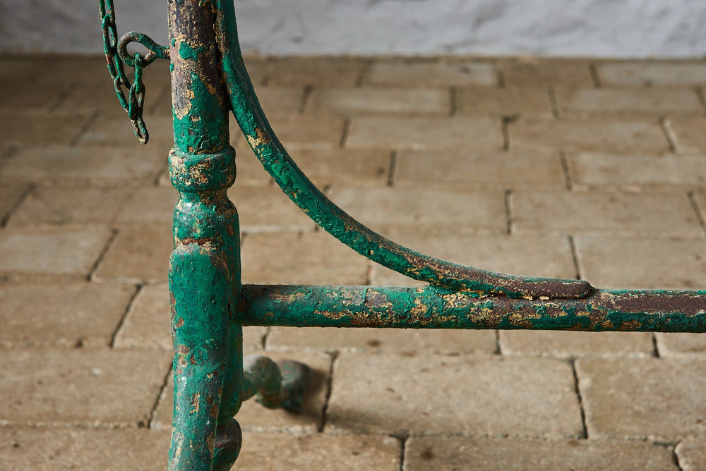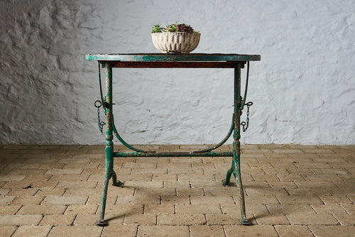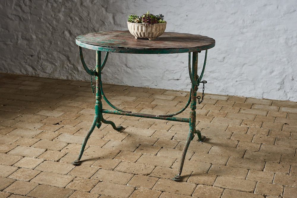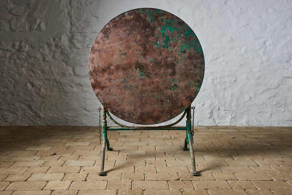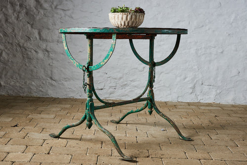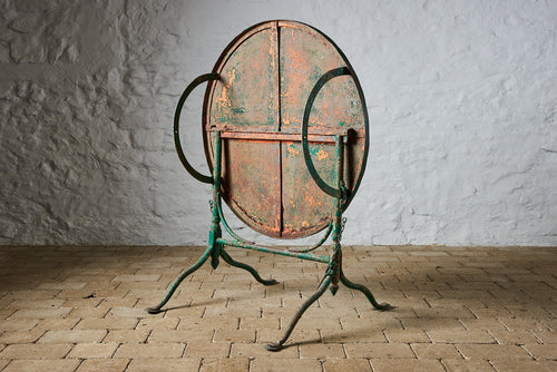 This tilting Italian wine tasting table has a superb natural patina. Made of wrought iron in the late 19th century it has very attractive legs simple enough to be considered contemporary by today's standards. It has a simple but ingenious locking mechanism enabling it to be folded away if required.