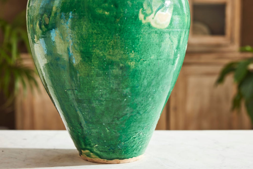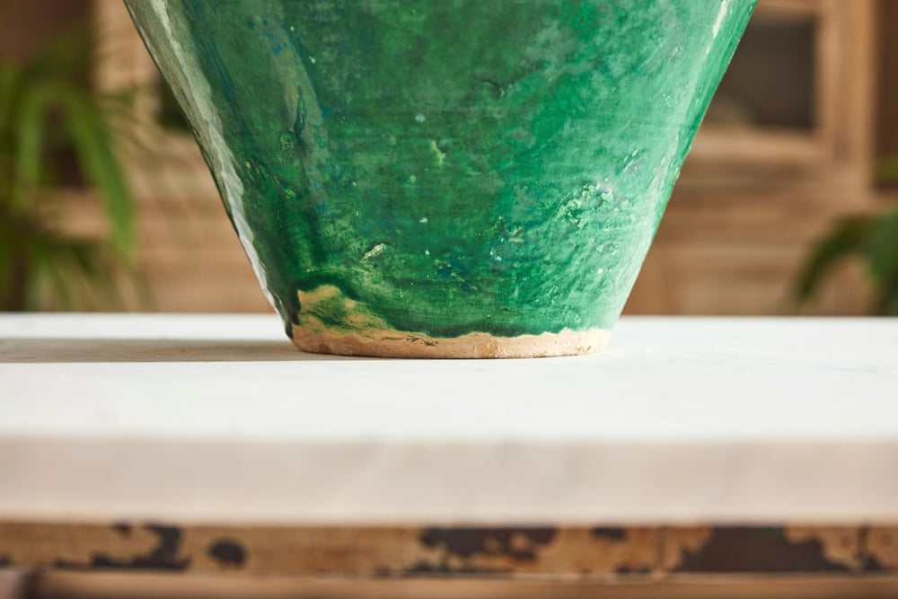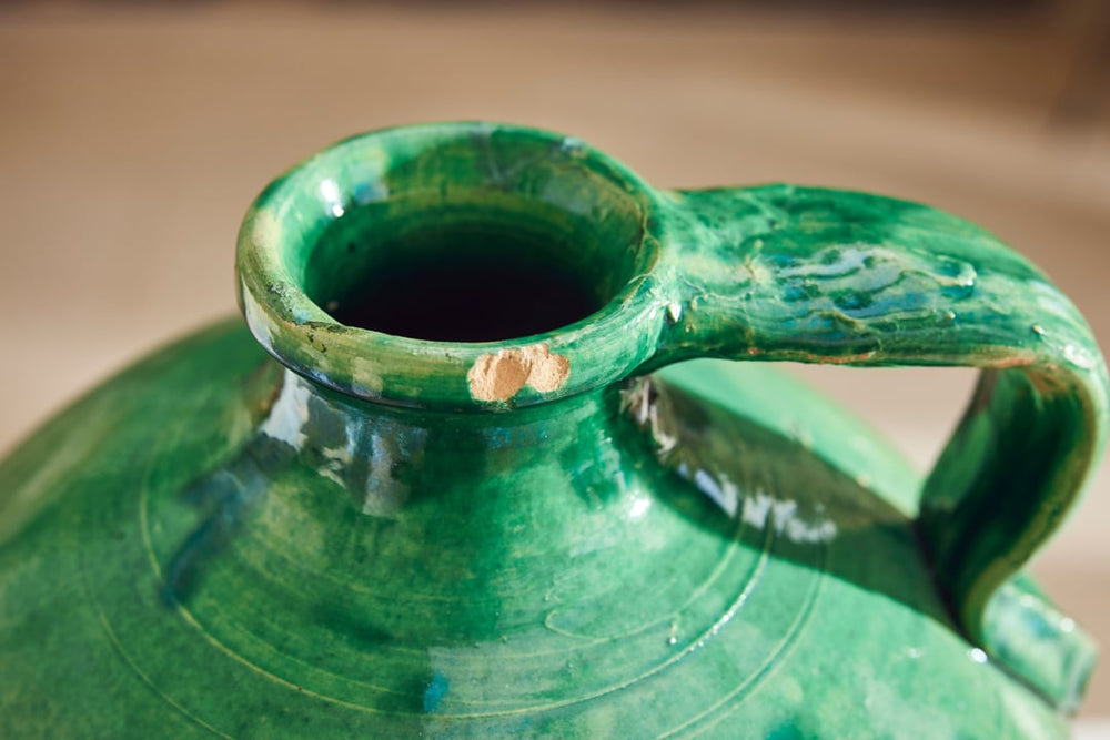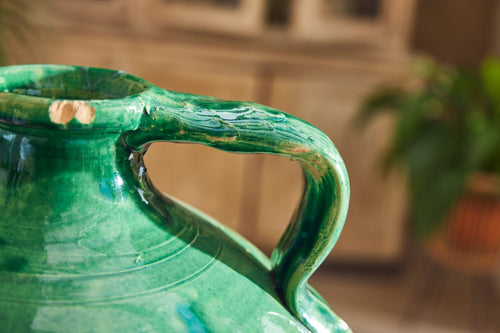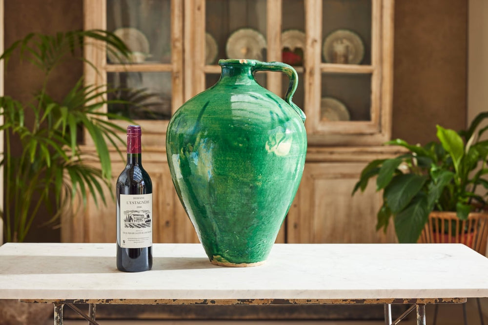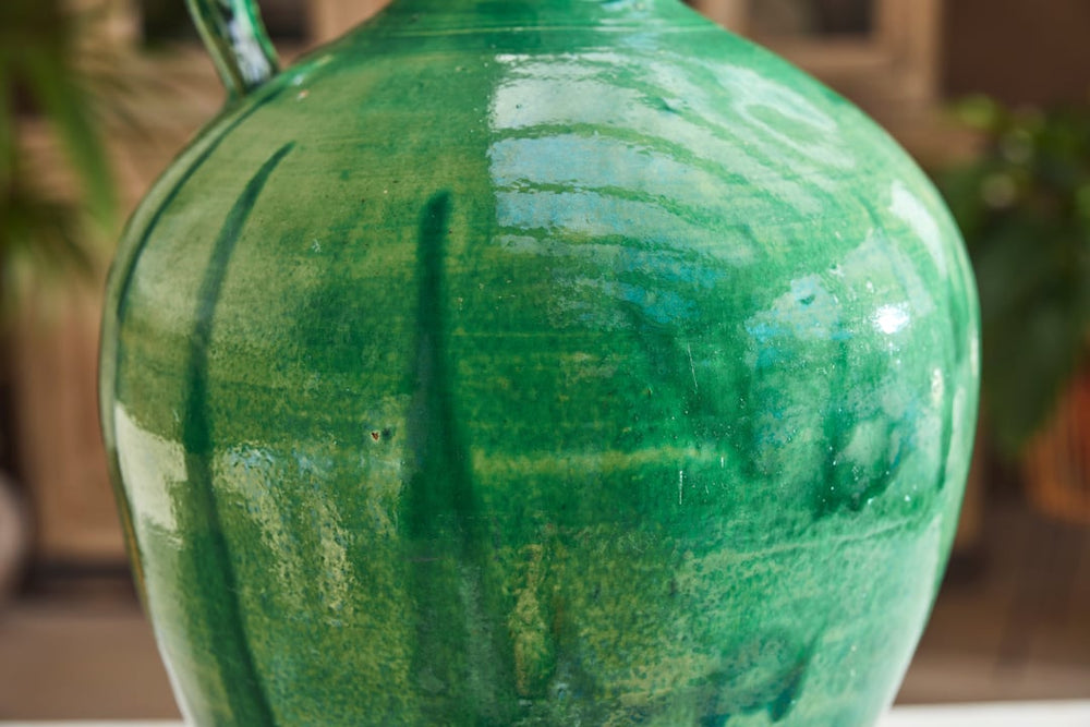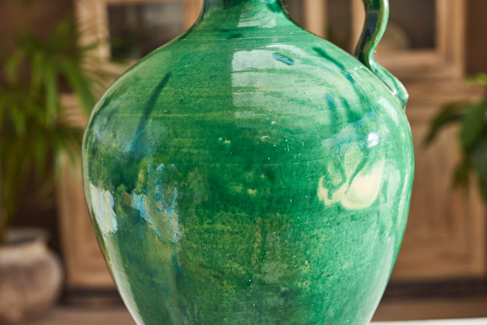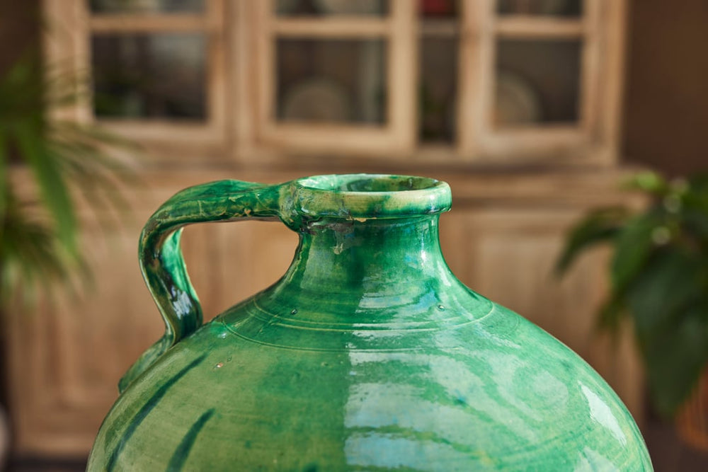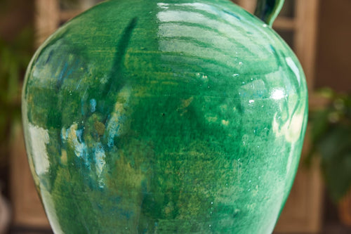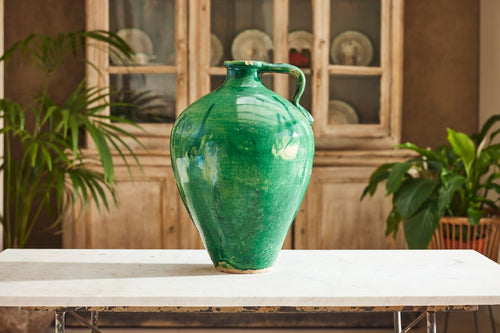 This beautiful olive oil jug originates from the Anduze region of southern France, known for its fine terracotta pottery. The soft green glaze, typical of pieces made in the village of Tornac, gives it a subtle rustic elegance.