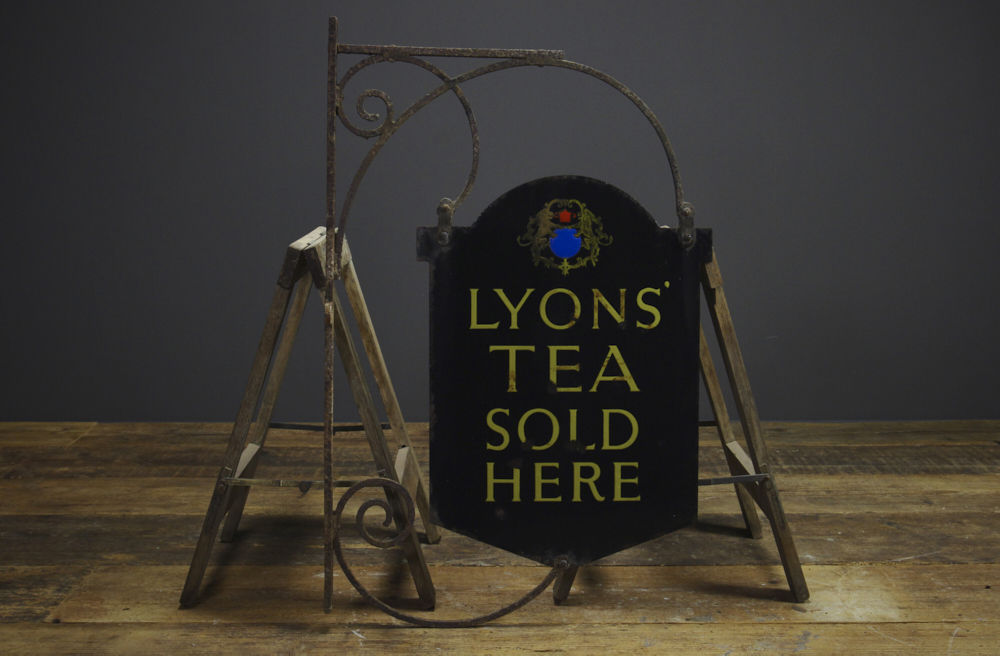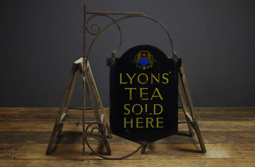 J Lyons and Co was a British firm founded in 1884, famous for its tea rooms and Lyons Corner Houses. This enamel sign advertising Lyons Tea would definitely be an asset to any British patio! The sign is in good condition and is untouched. It’s double-sided and still on its original bracket, so can easily be attached to a wall.