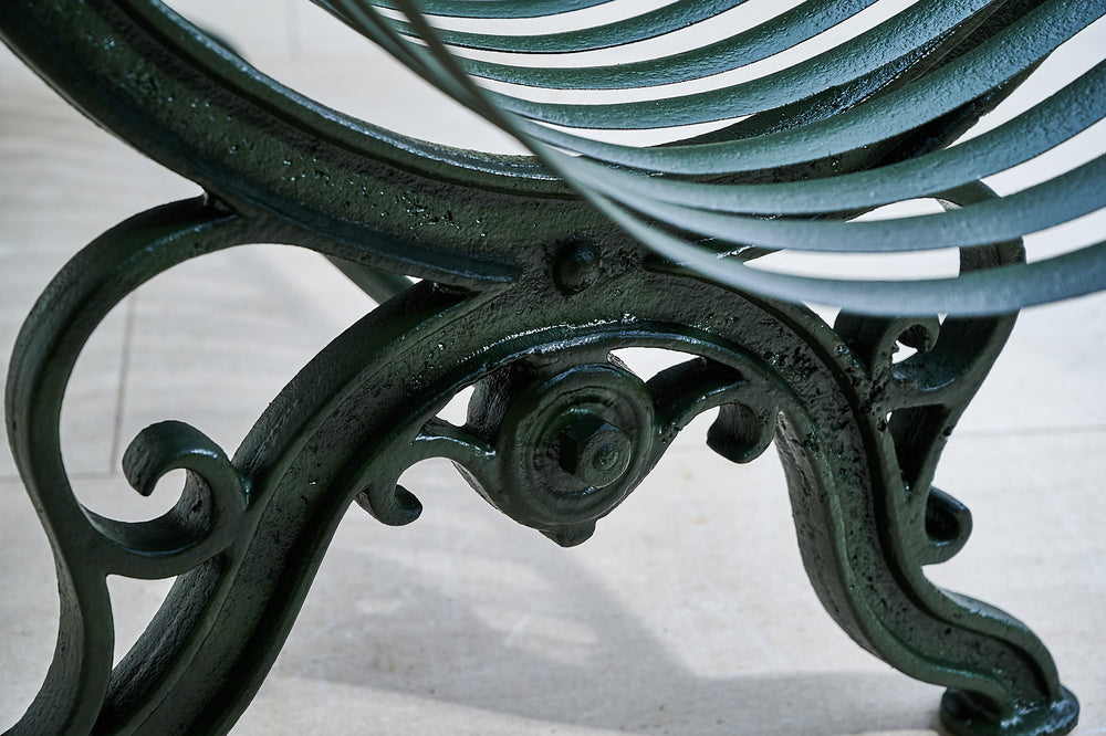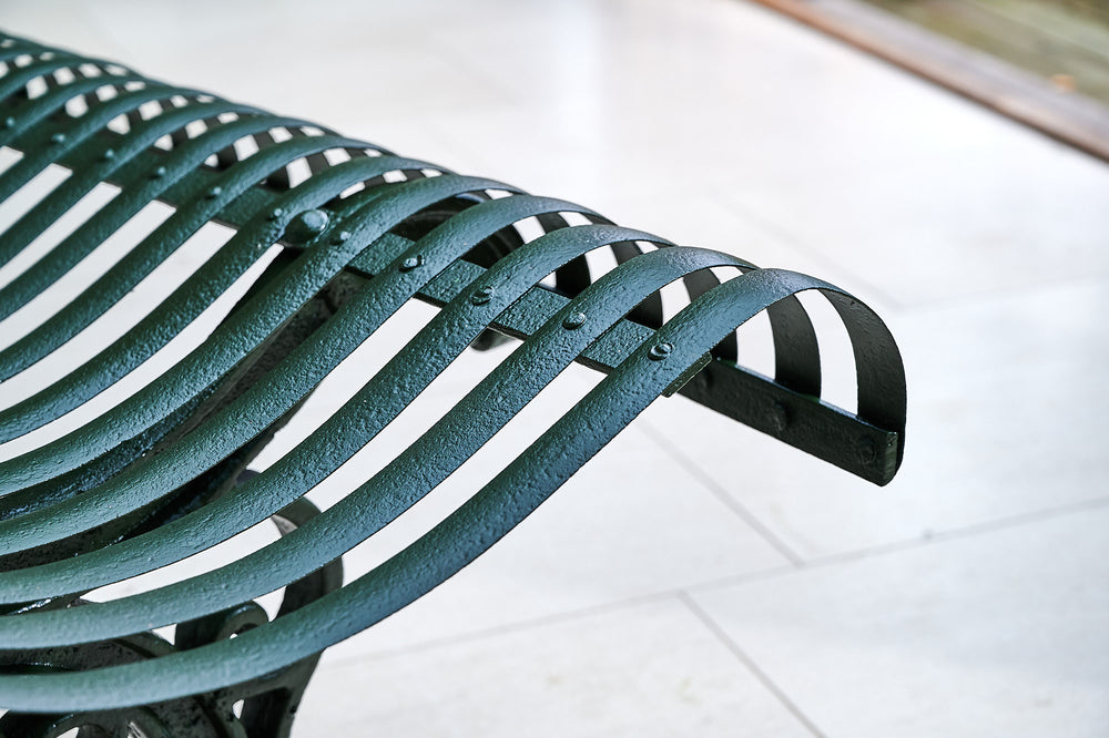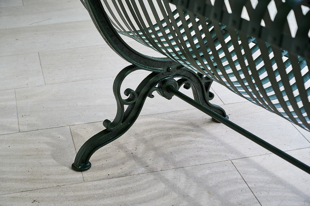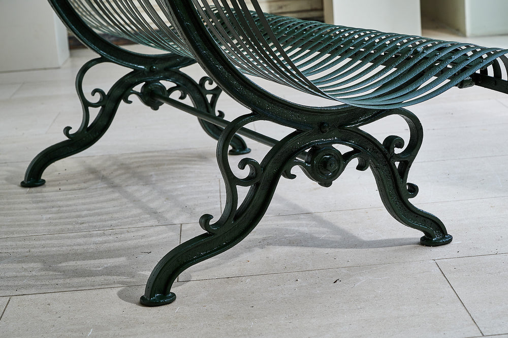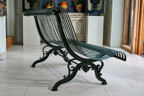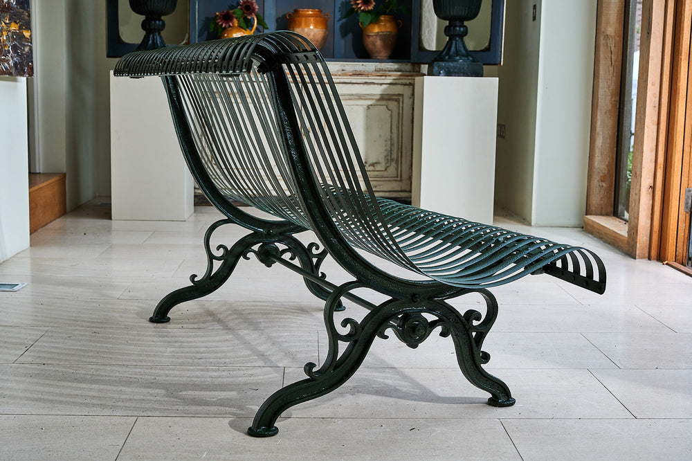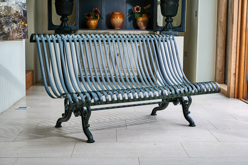 This wonderful 19th-century bench from the foundry of Val D'Osne near Paris oozes character and charm. With wonderful curves, the wrought iron strapwork seat sits on a strong cast iron frame. In excellent condition having been restored by us this bench would be an elegant addition to any garden.