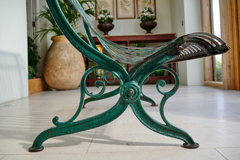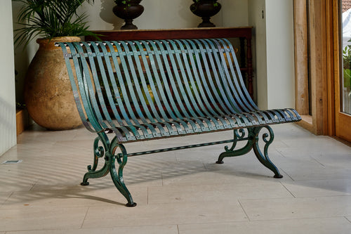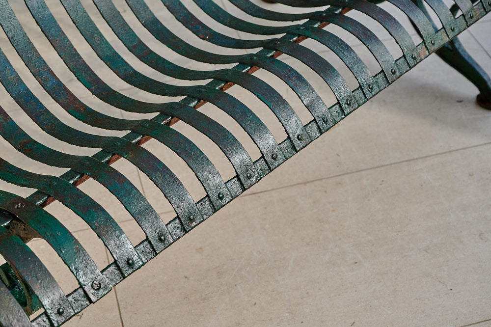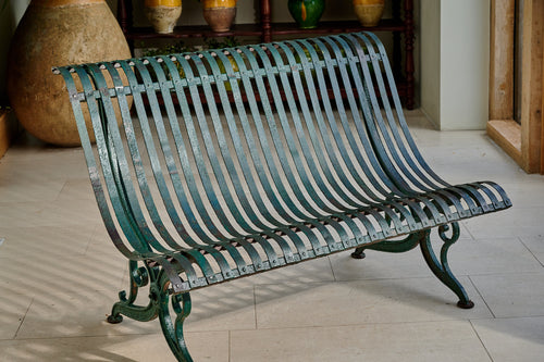 This wonderful 19th-century bench from the foundry of Val D'Osne near Paris oozes character and charm. With wonderful curves, the wrought iron strapwork seat sits on a strong cast iron frame. In excellent condition having been restored by us this bench would be an elegant addition to any garden.