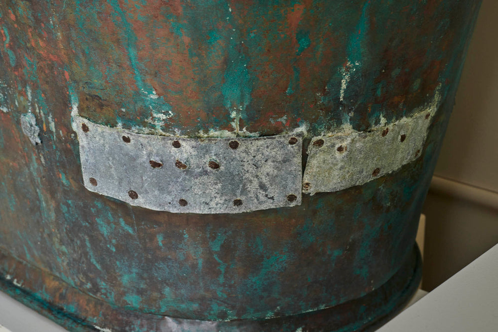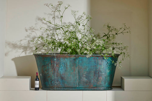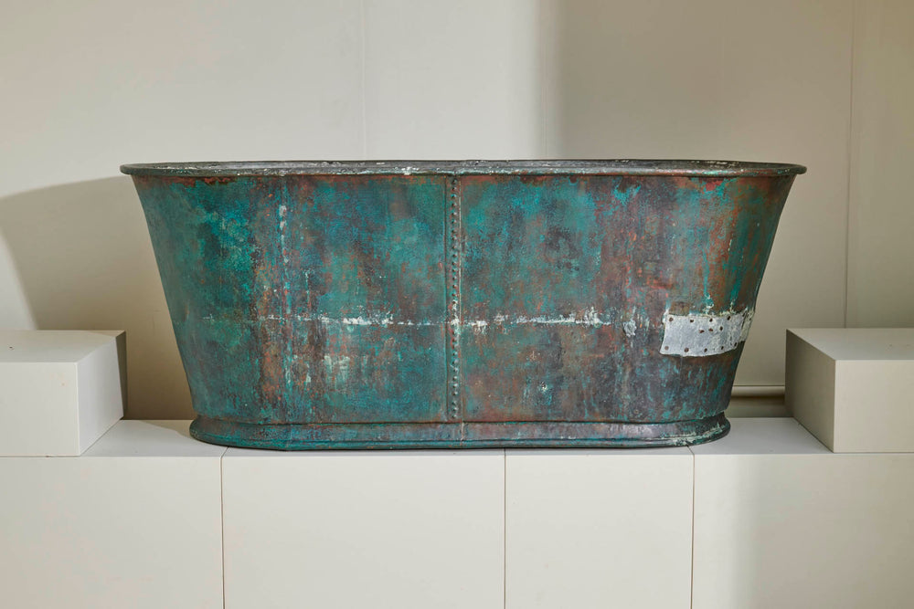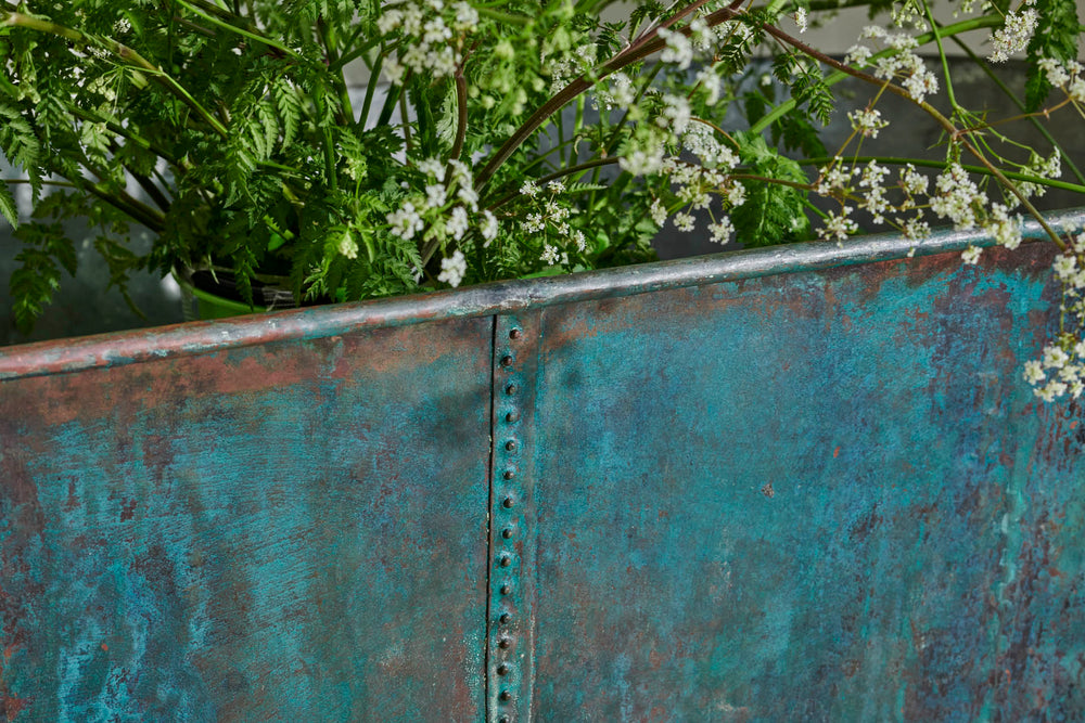 A beautiful French copper-lined bath with rivetted detail and the most amazing natural verdigris patina. This bath repurposed as a planter would make a fabulous garden centrepiece either filler with seasonal flowers or champagne!!