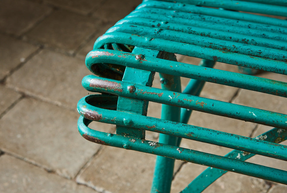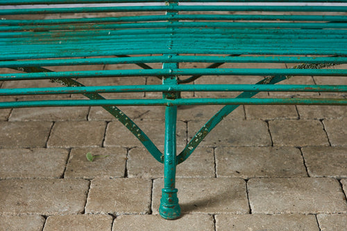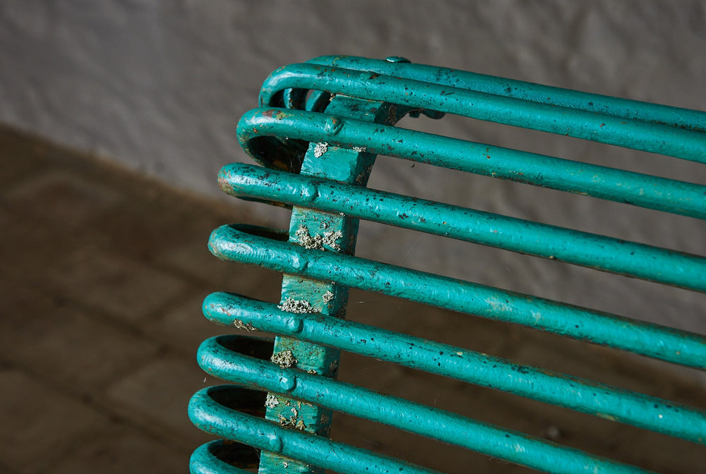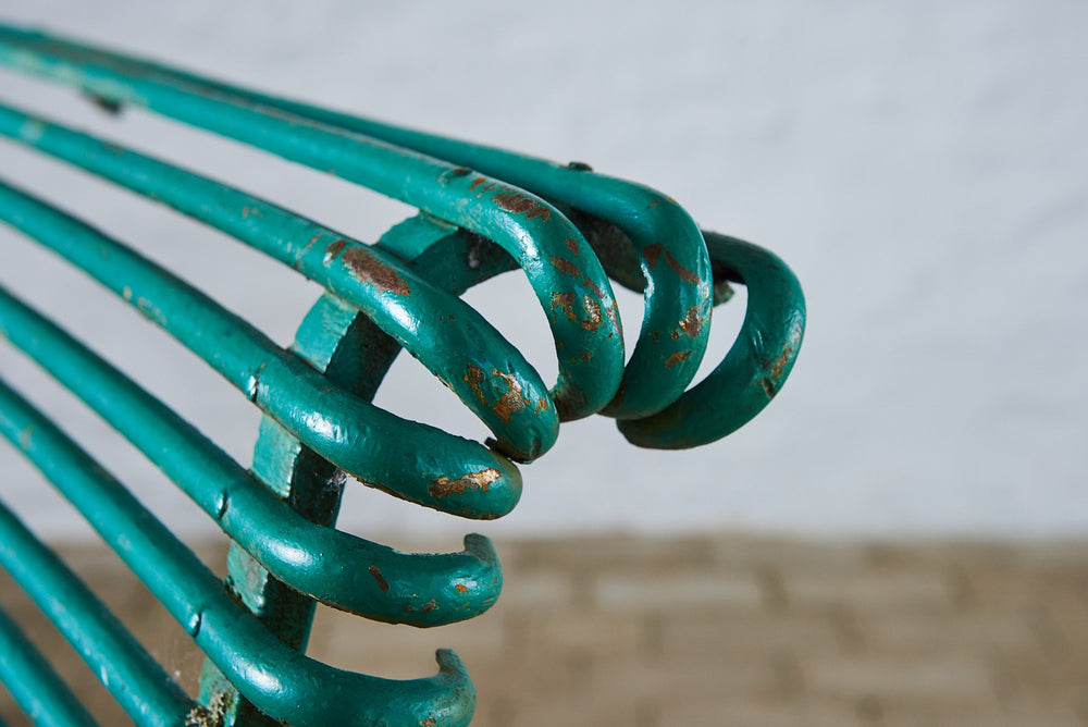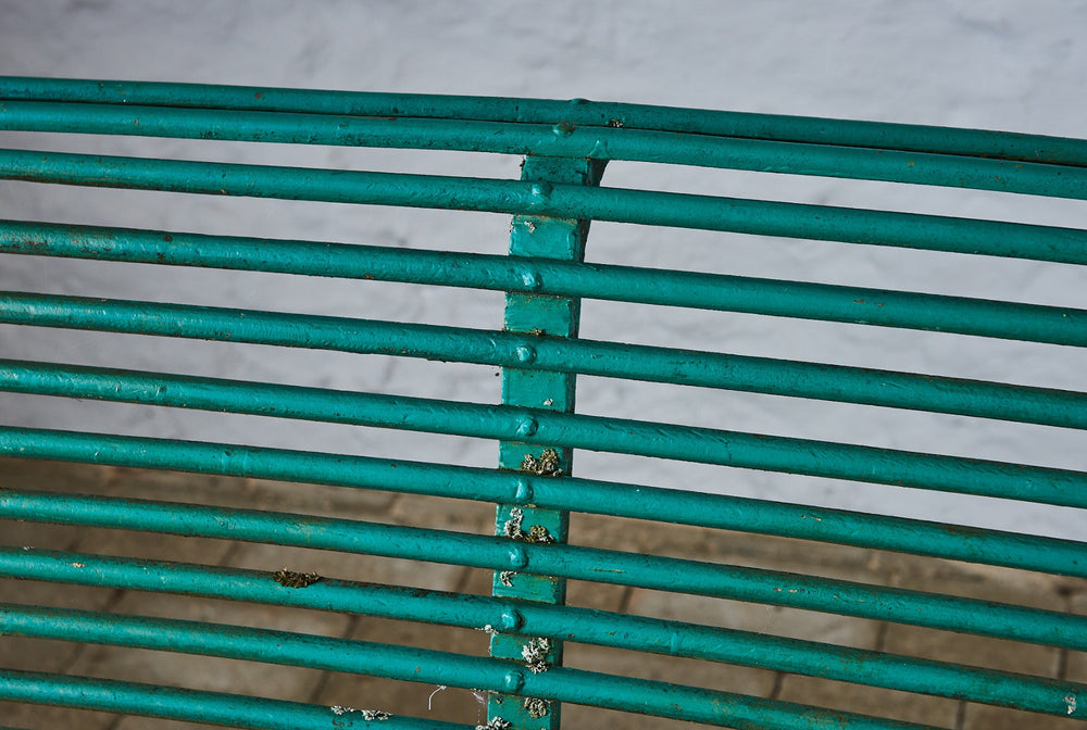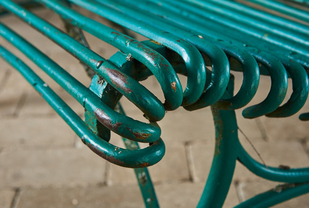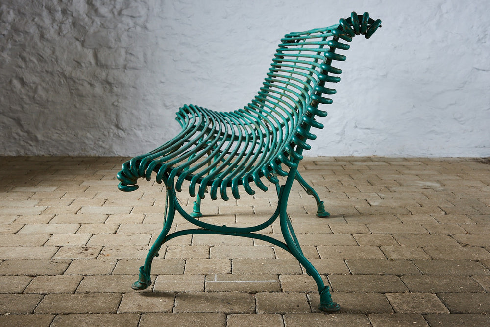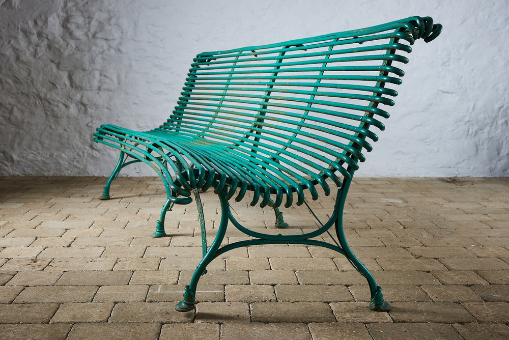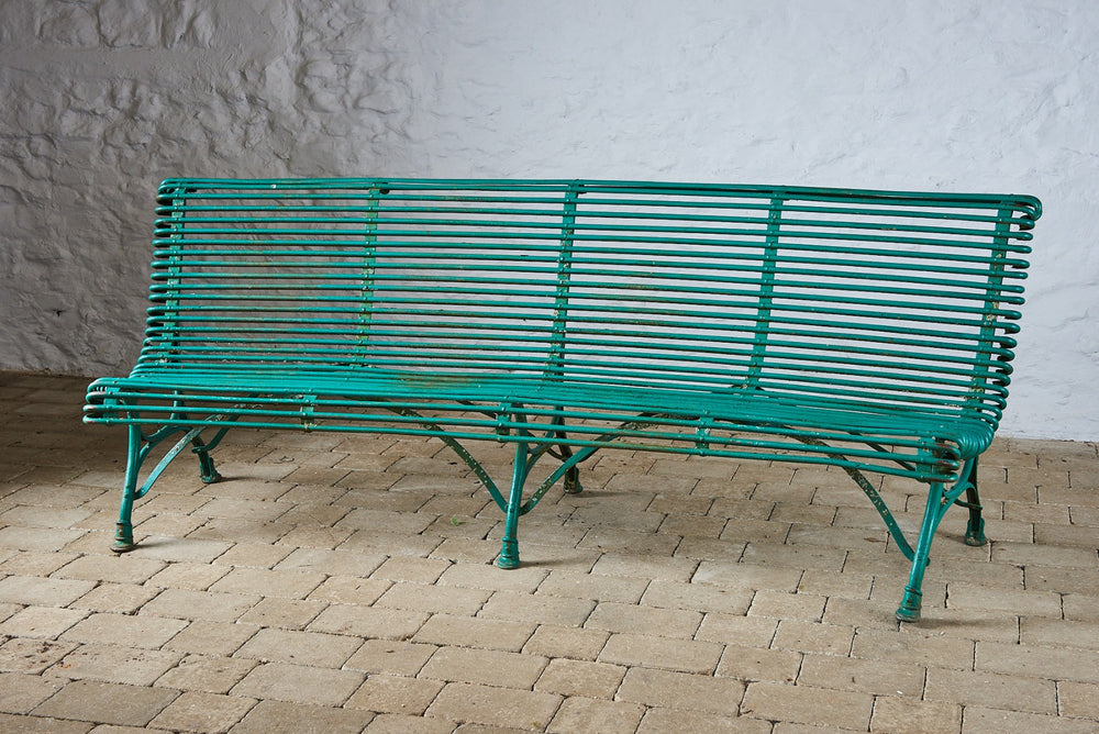 An incredibly rare curved arras bench, completely untouched, in its original green paint.