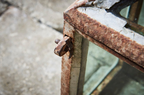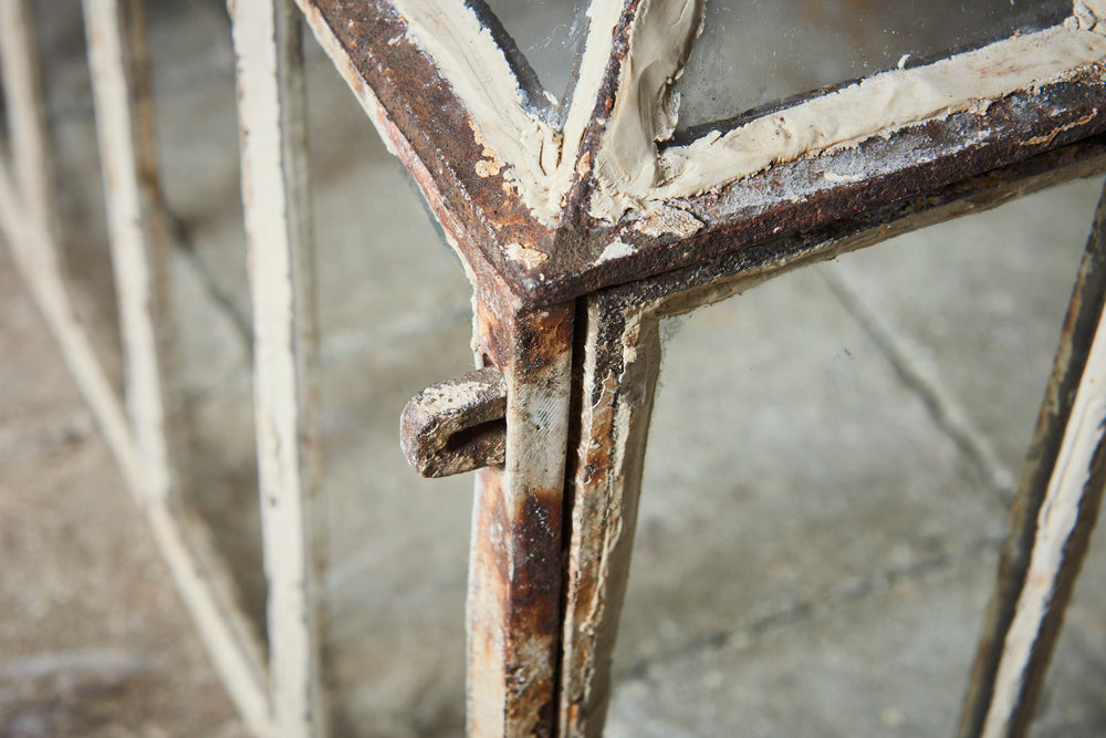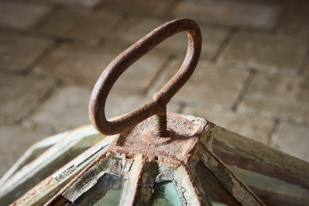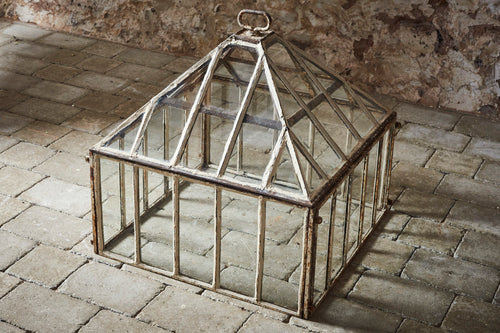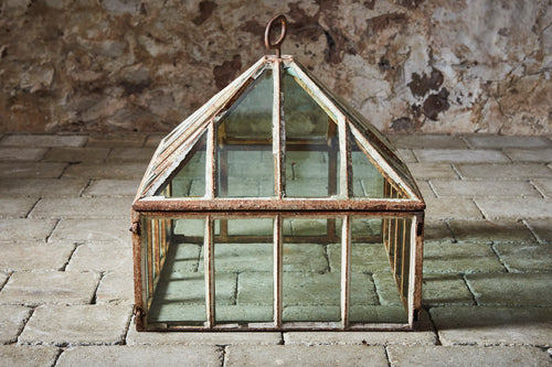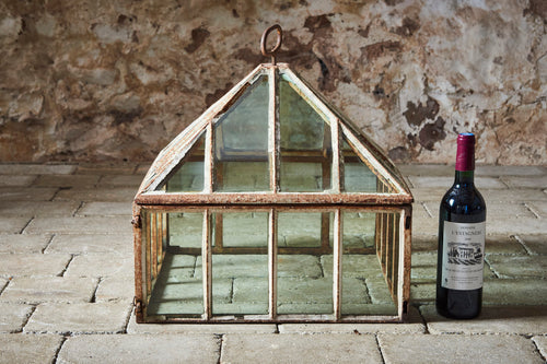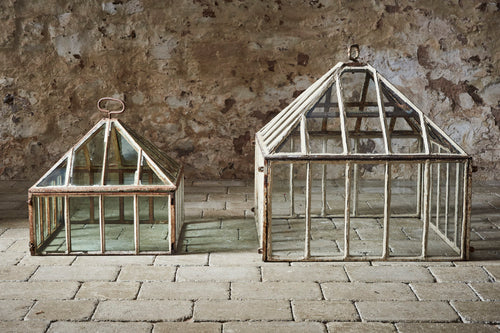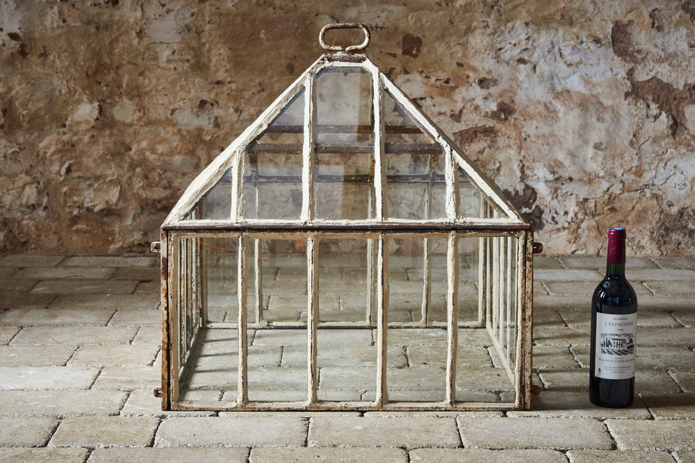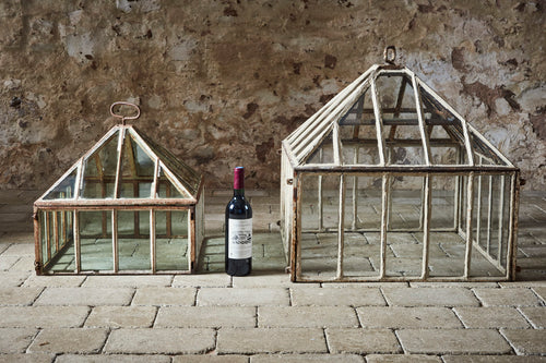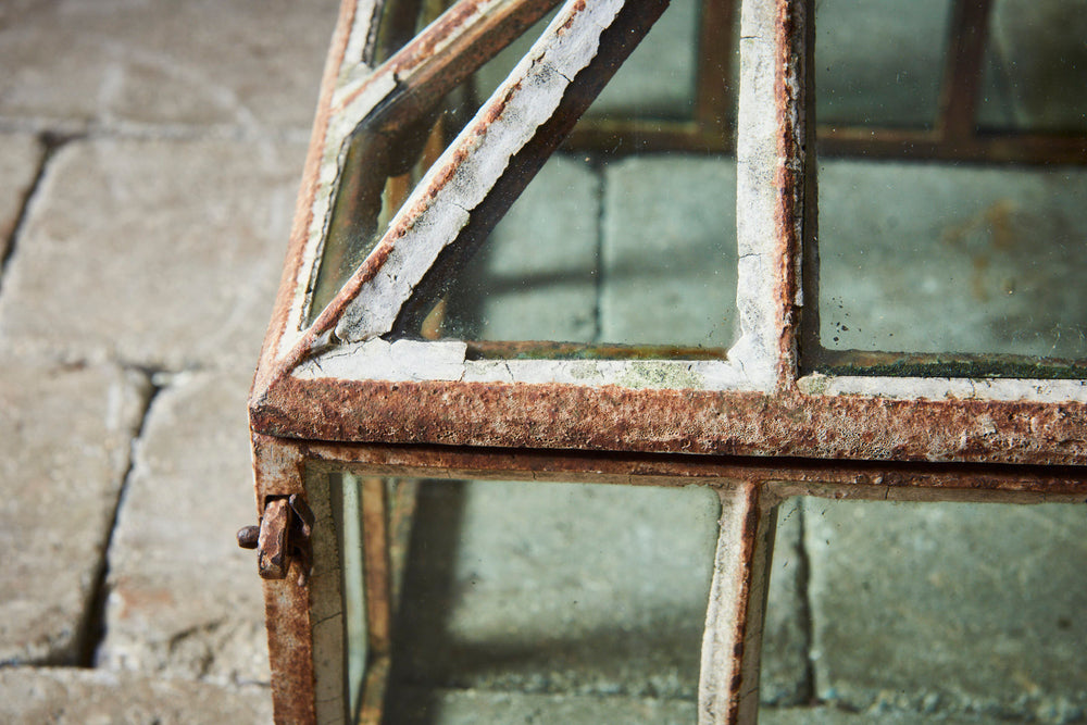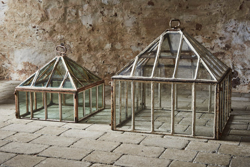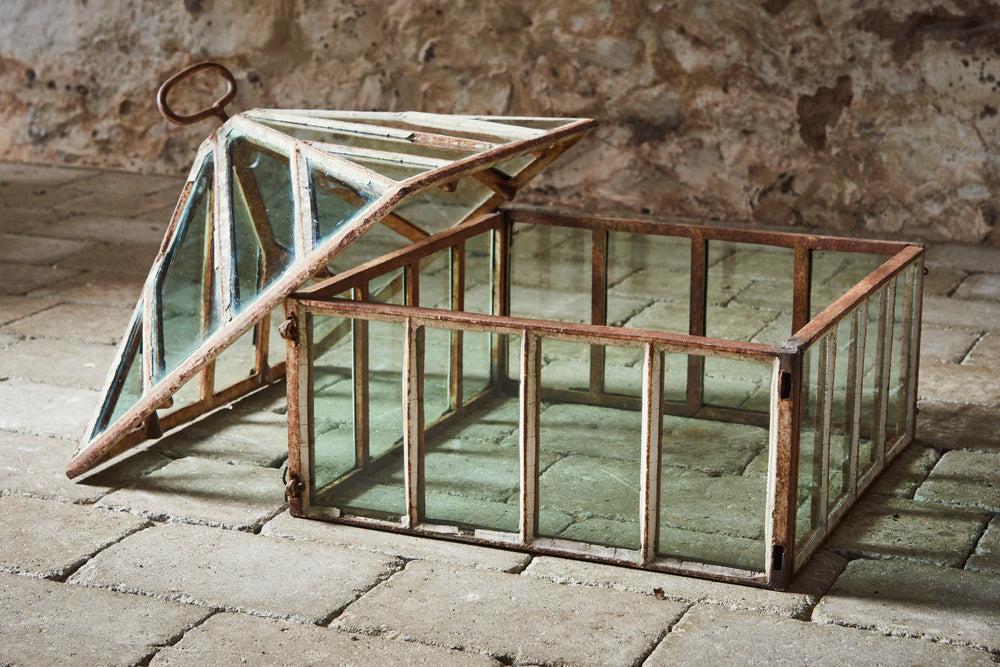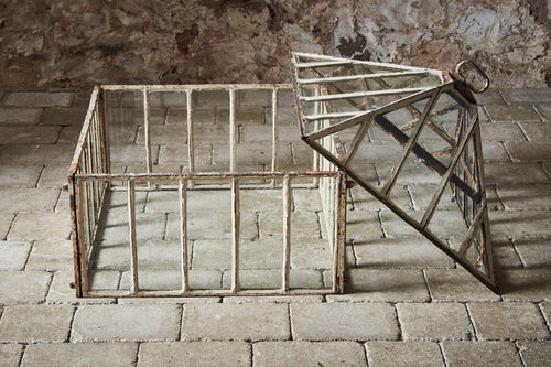 A pair of cast iron and glass Victorian Cloches. Whilst we see a few of the smaller cloches it is very rare to find the larger one. We are selling these together as they were both found at the bottom of a rural garden in Kent and it does not feel right to separate them if we can avoid it. On the larger one some of the glass has been replaced but otherwise, they are both in an untouched original condition.
