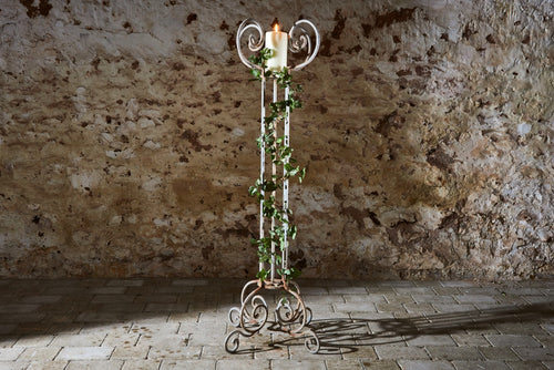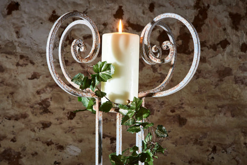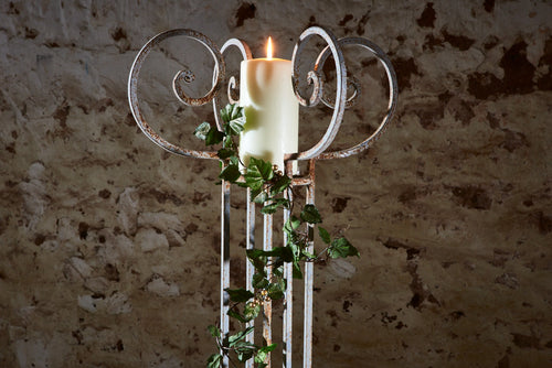Made of wrought iron with a decorative scroll design, they can be used for trailing plants or candles. Decorated with festive ivy and scented candles they are perfect for Christmas! We have 3 availibe and the price is per item.