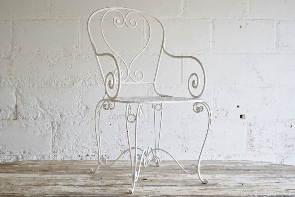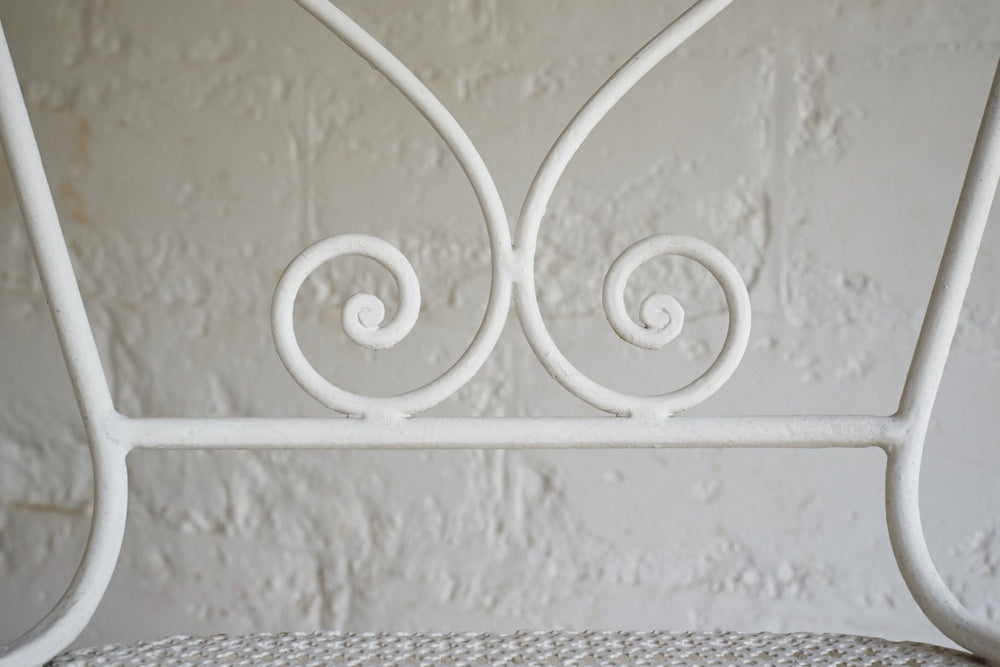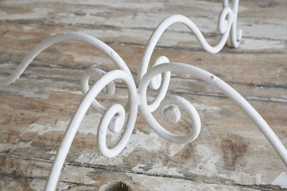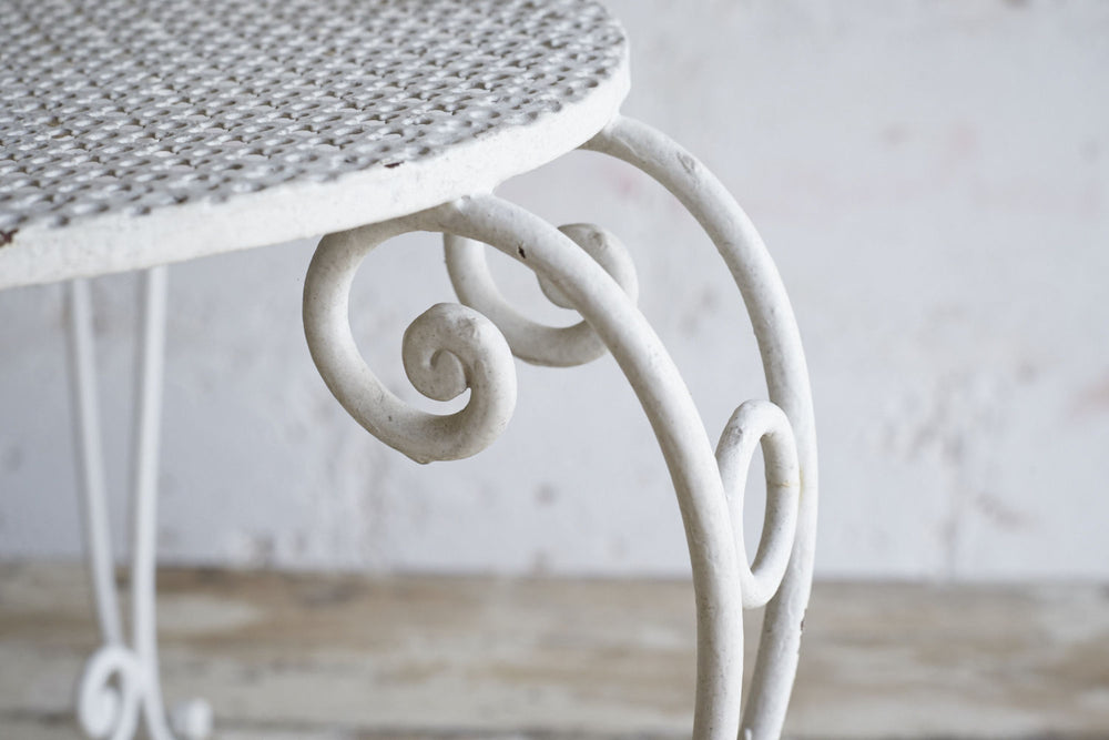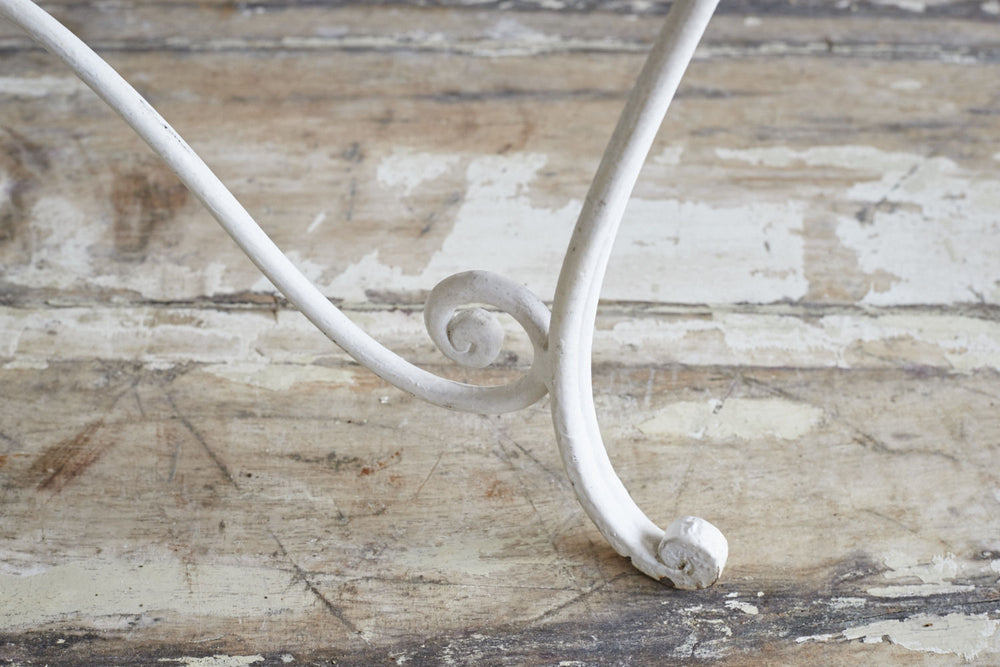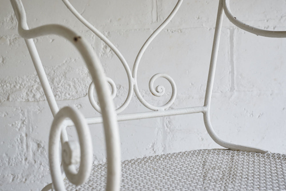 We found this exquisite dining set in a market in Paris and were immediately struck by the high quality of its wrought iron construction. The set is heavier than most vintage garden furniture, suggesting it was originally made as a high-end purchase. It's in great condition, with only minor signs of use.