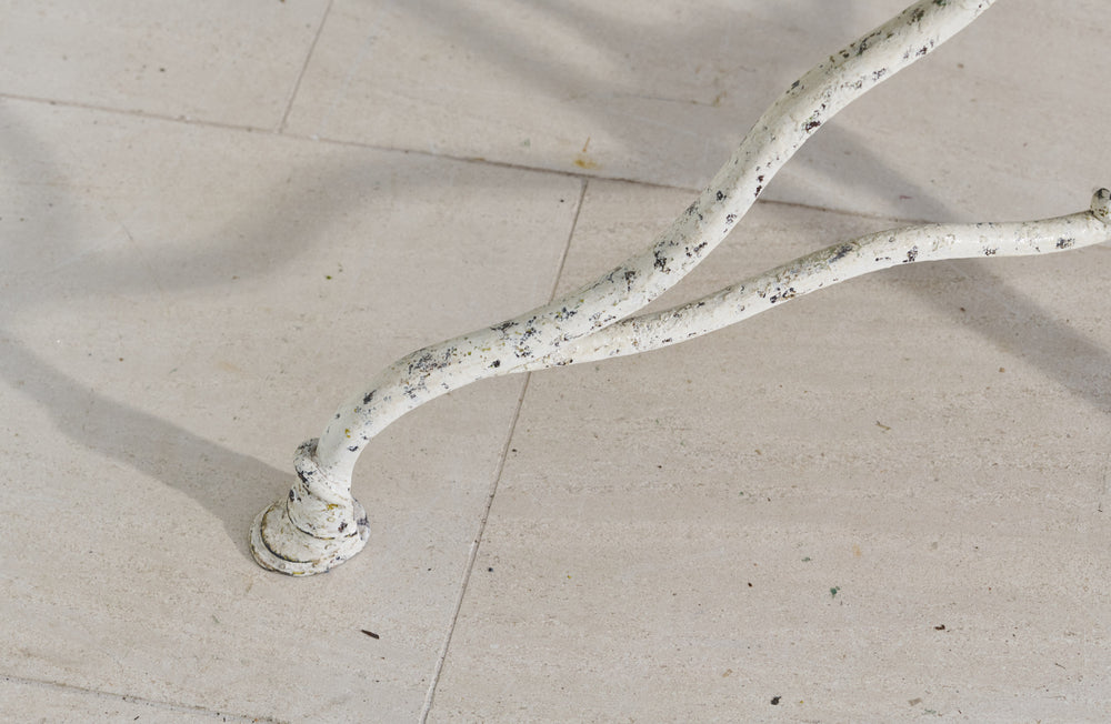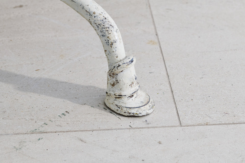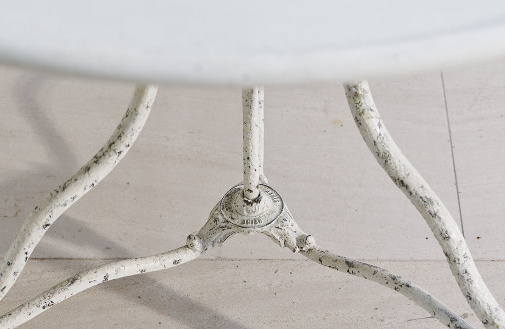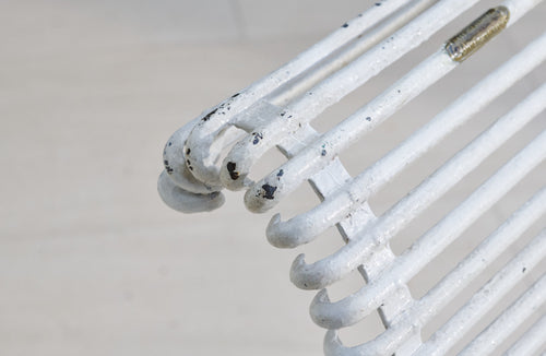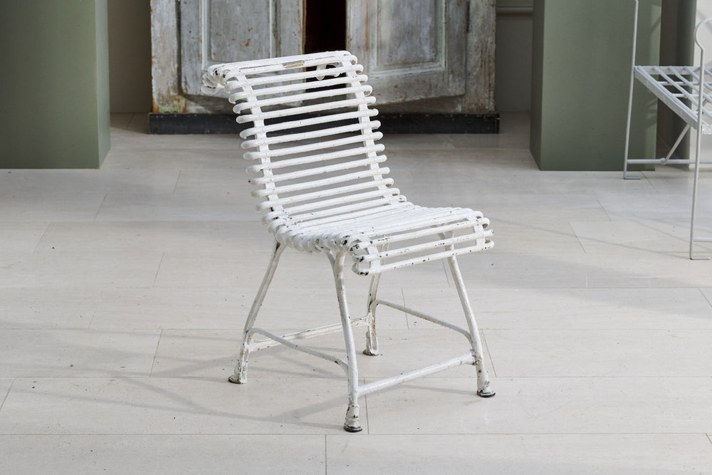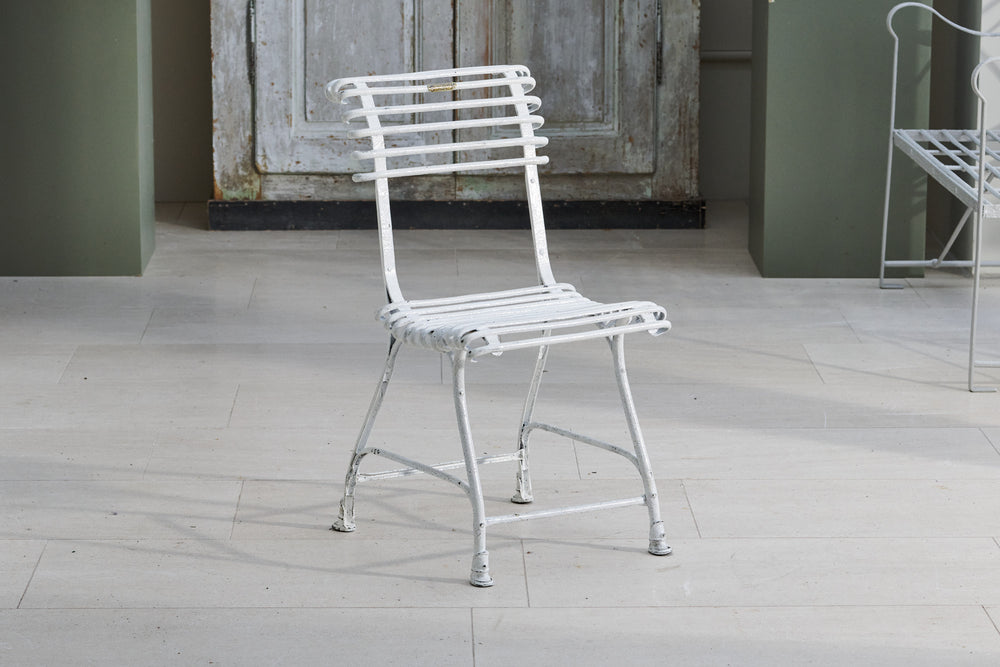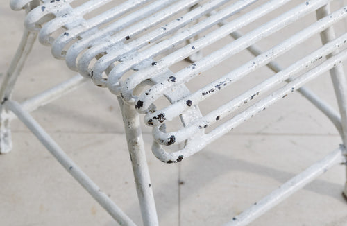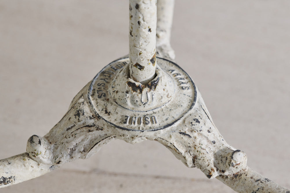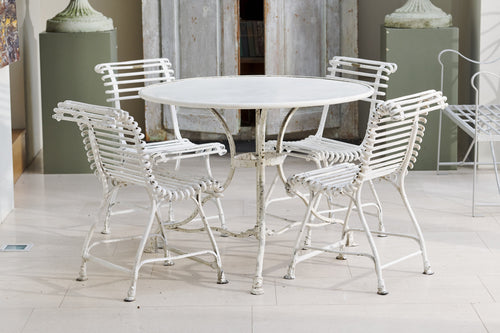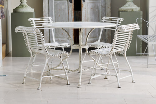 An increasingly rare Arras dining set consisting of a table, two full-back chairs and two half back chairs which is in very good condition. Both the table and chairs have their original hoof feet indicating that they were made by the company Grassin Baledans in Northern France in and around 1900. This set would make a striking addition to any garden.