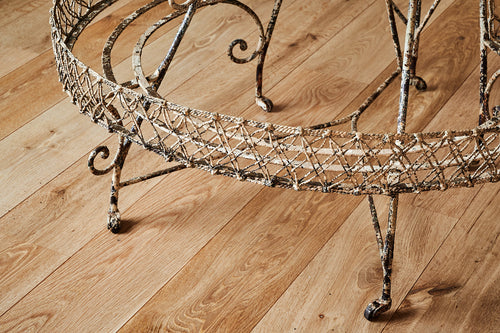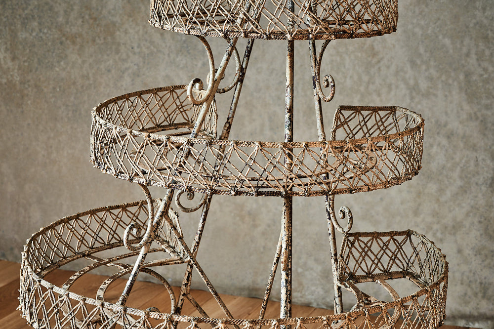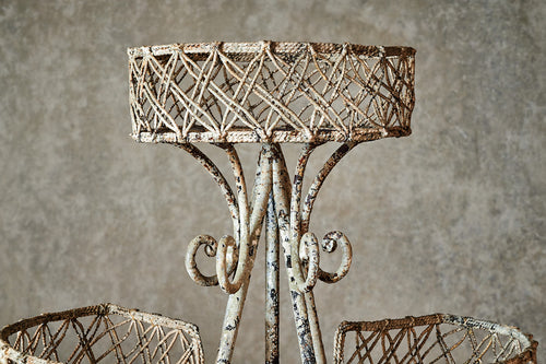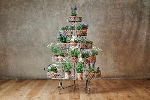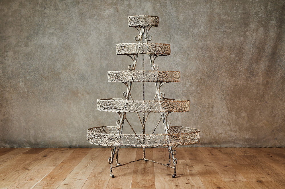This late 19th-century wrought iron plant stand is a once-in-a-lifetime find. Still, in its original painted finish, it has five tiers surrounded by wire framed sides, all in good stable condition.