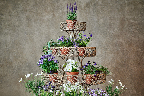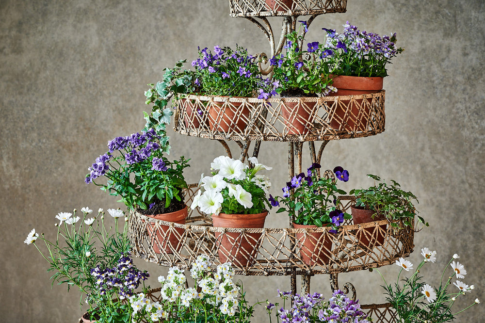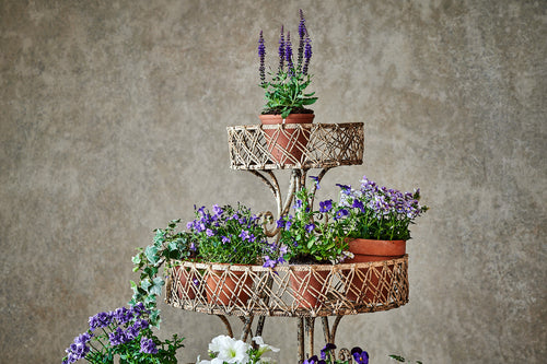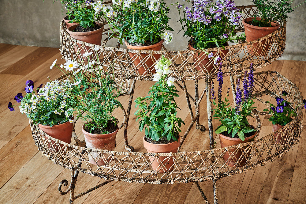 It retains its original castors and although they no longer turn the stand is level and upright and does not wobble at all. It is a lovely decorative piece in its own right and would allow the creation of excellent flower and plant displays throughout the year.